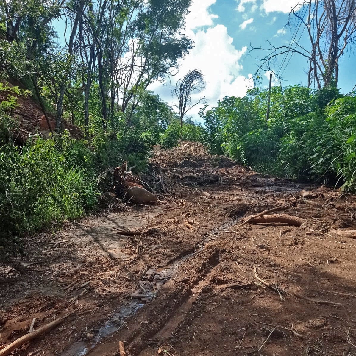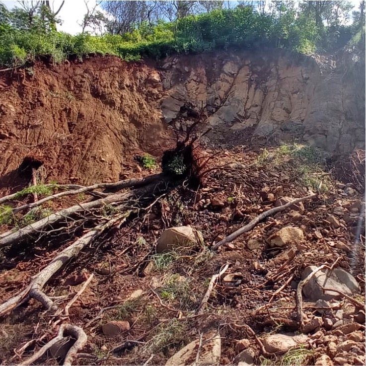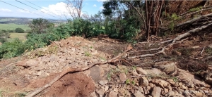 Muita terra, pedras e vegetação desceram da encosta devido o solo encharcado por conta do grande volume de chuva dos últimos dias. O trabalho agora é de remoção do material que obstruiu de vez a estrada.