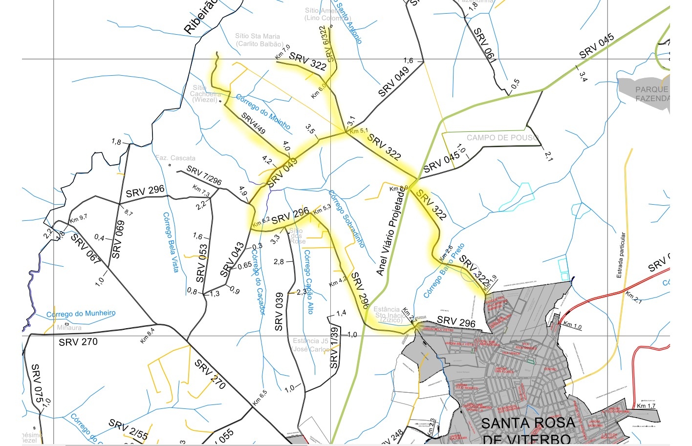 A Prefeitura Municipal iniciou anteontem, segunda-feira,24, os serviços de manutenção nas Estradas Rurais, partindo da SRV 322 (Barro Preto), contornando toda a área até o fechamento na SRV 296 (Zizico), conforme em amarelo no mapa. O Serviço deve perdurar em torno de 10 dias.