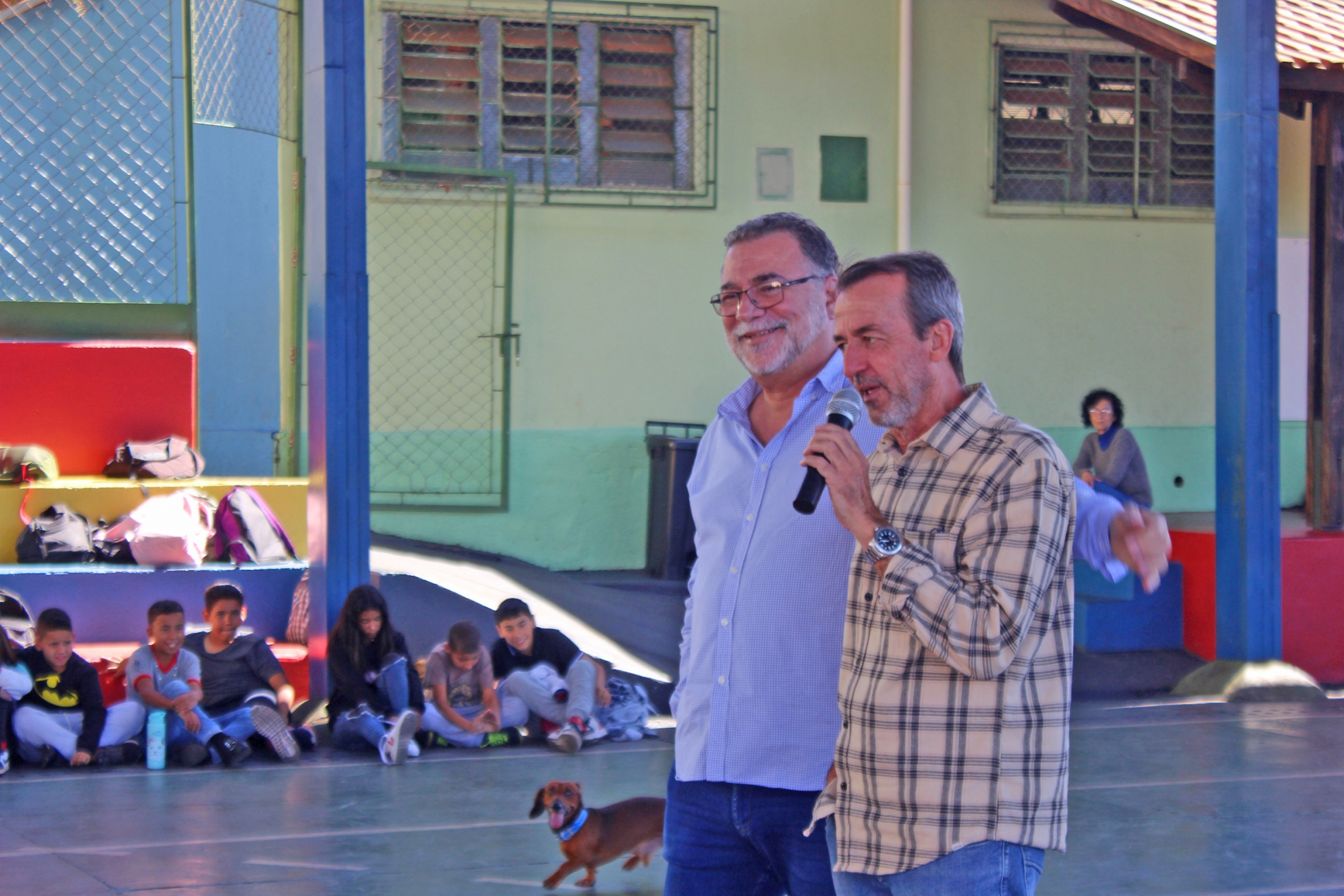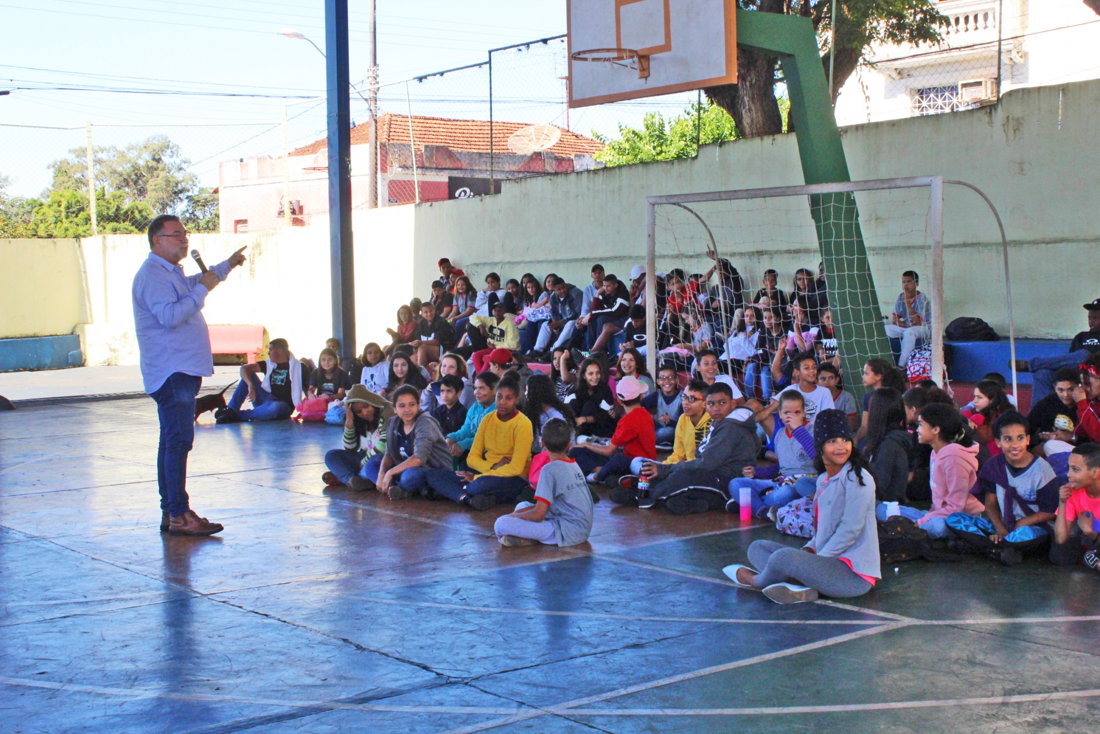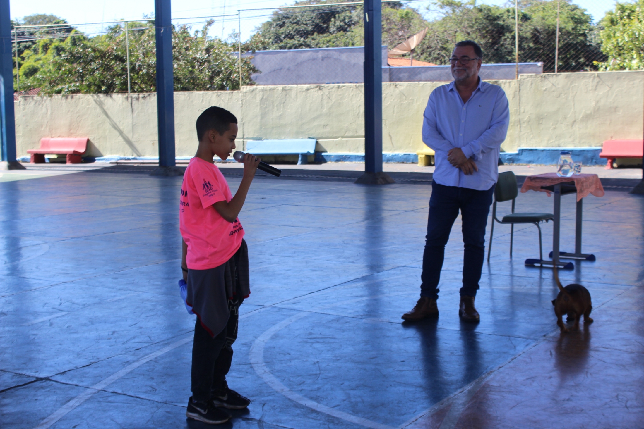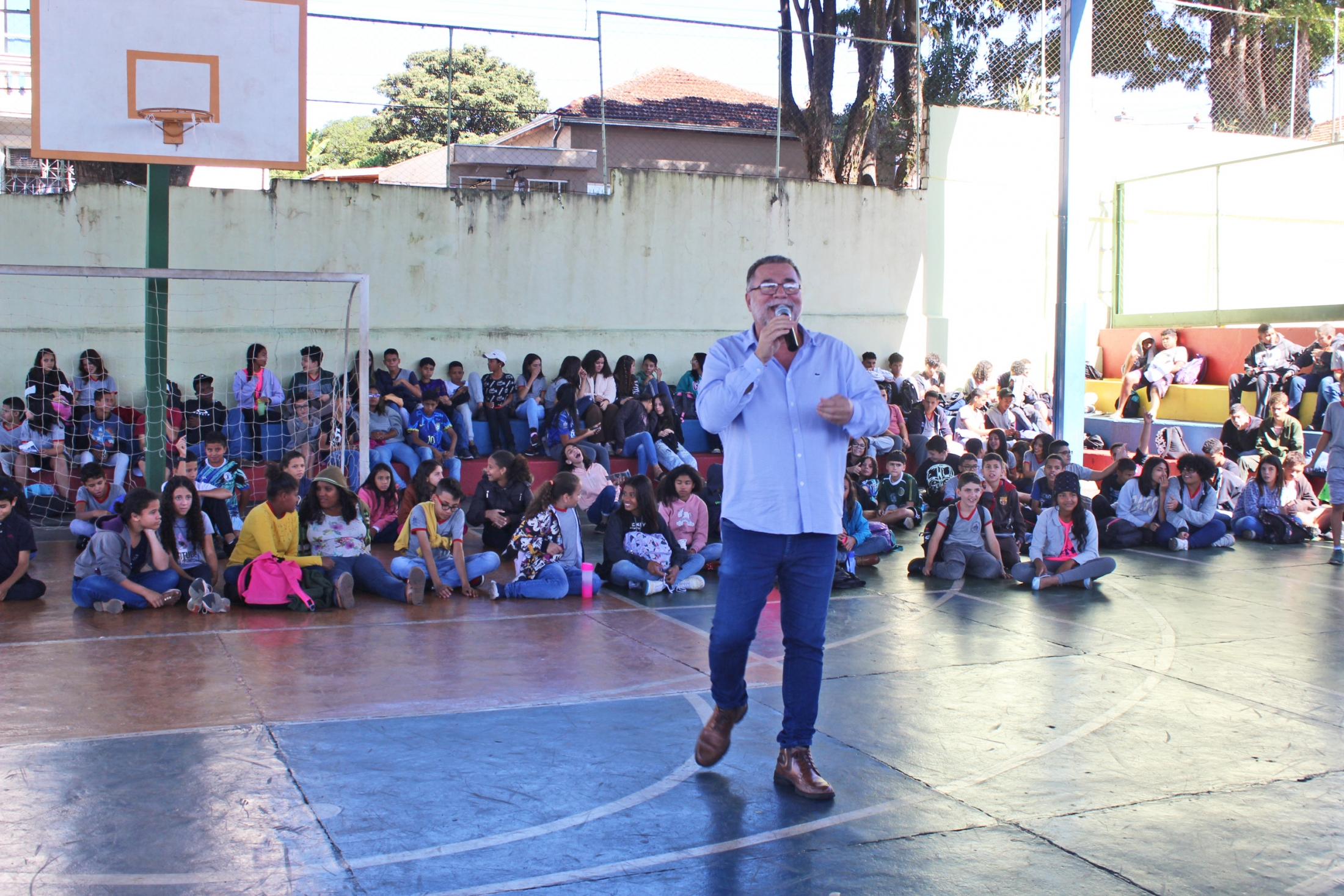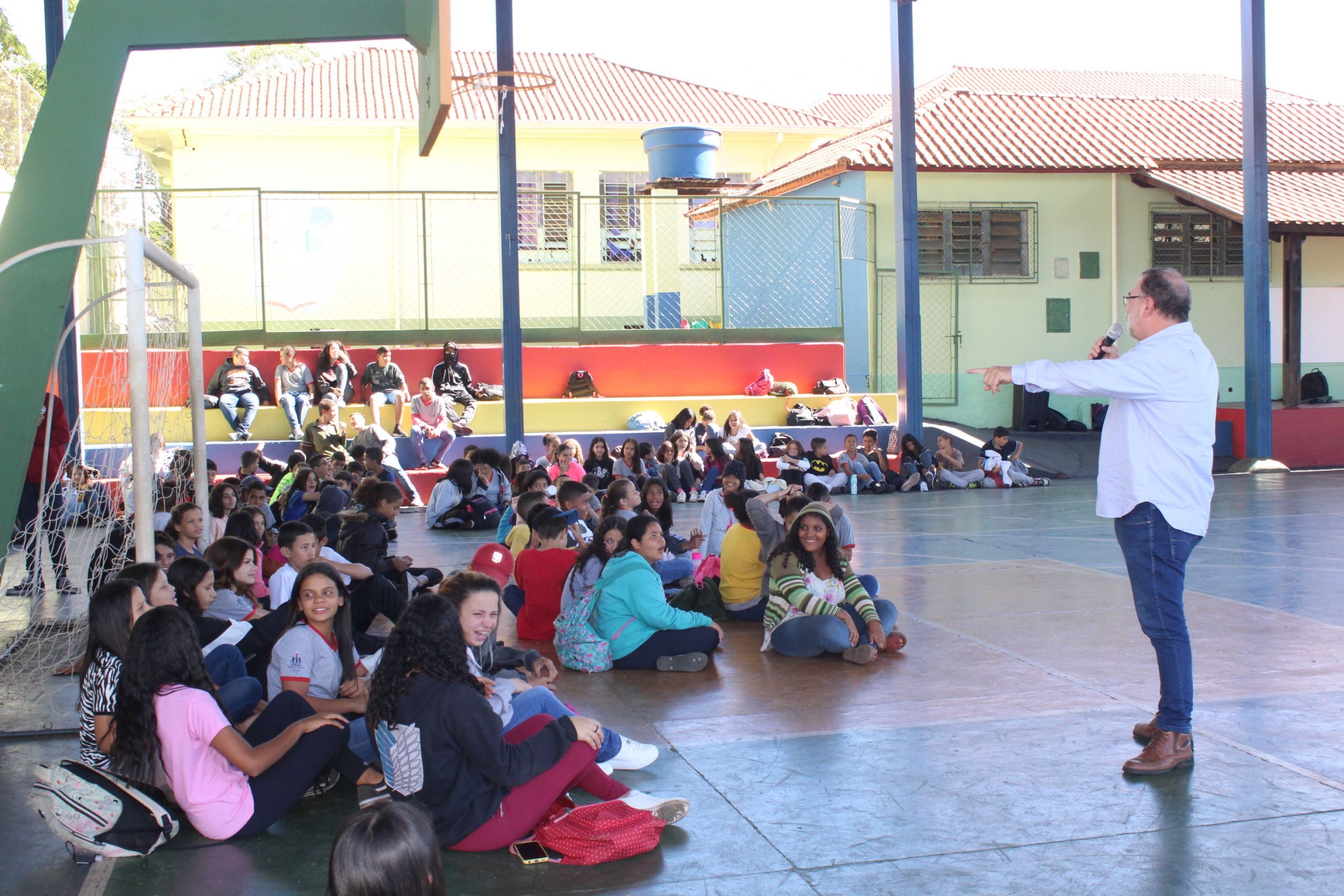 Com muita descontração, a oportunidade que agregou conhecimento serviu ainda para os estudantes, do 6º ao 9º ano do Ensino Fundamental, conhecerem um pouco mais o chefe do Executivo Municipal e exercerem a cidadania ao perguntarem sobre temas específicos de nossa cidade, como reformas de quadras esportivas, o campão e a areninha, entre outras. O Prefeito fez questão de responder cada uma das indagações e também falou sobre a importância do estudo. “Esse período que vocês estão vivendo na escola é o período mais importante da vida de vocês. Deem muita importância e pensem no futuro. O mercado de trabalho é extremamente competitivo. O jovem que não se preparar e, que não adquirir conhecimento em alguma coisa, terá muito mais dificuldade na vida” aconselhou.
