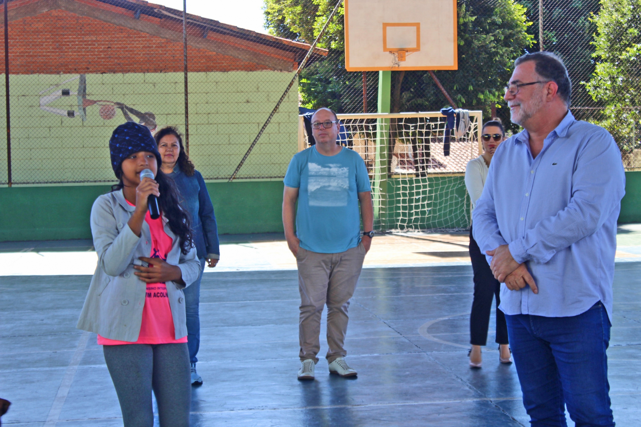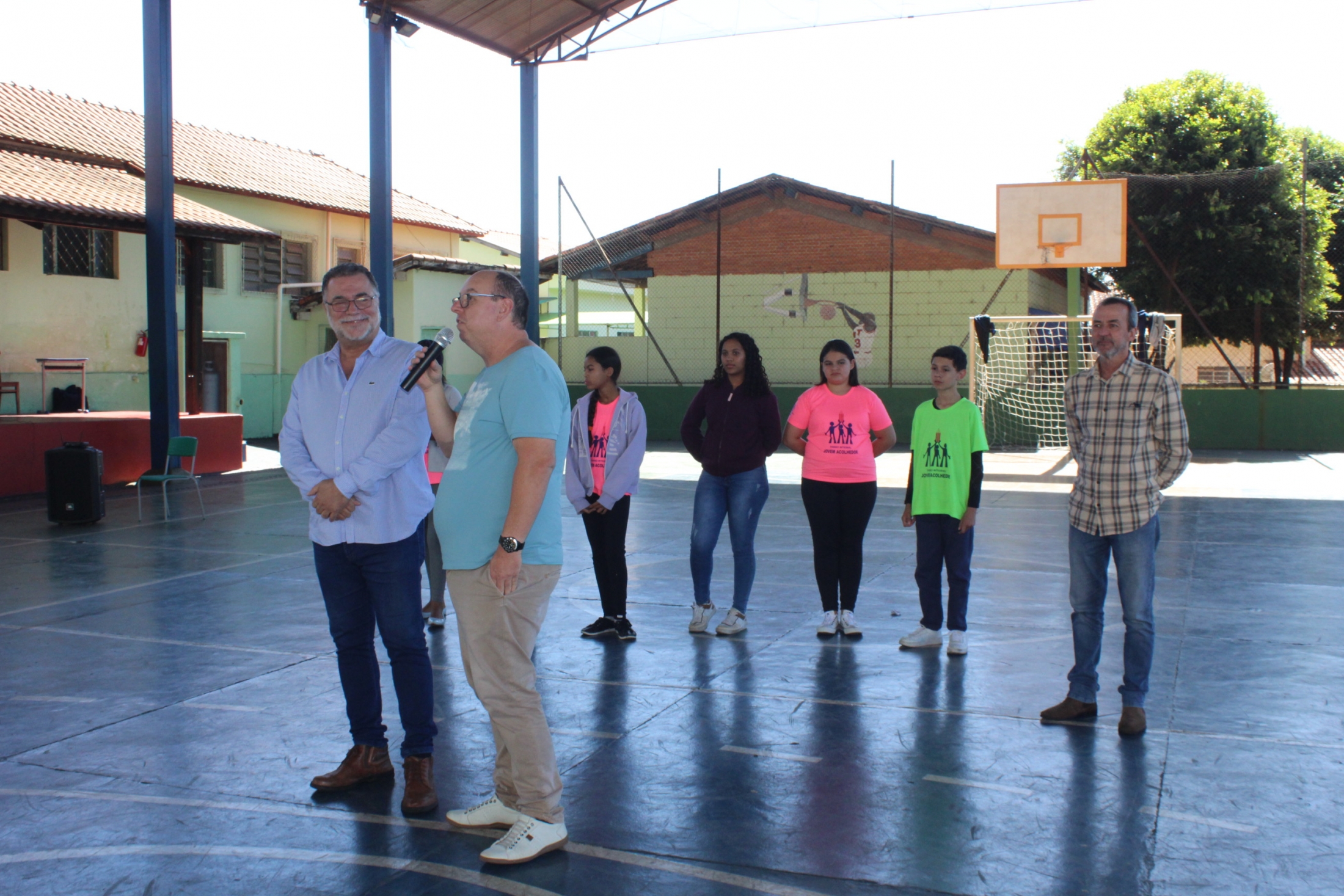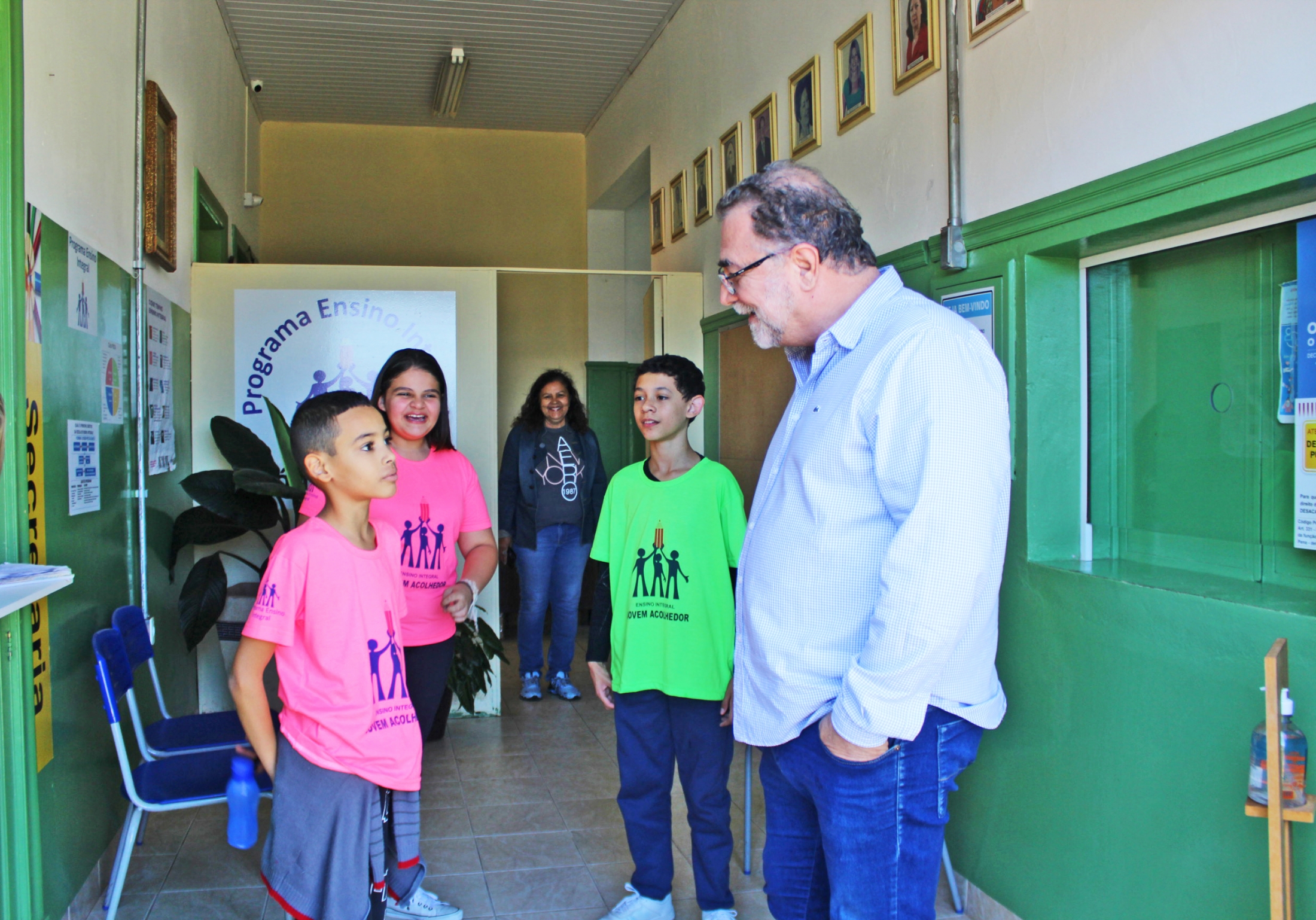Recepcionado pelos jovens acolhedores Justine, João Paulo, Eduardo, Maria Isabela e Ana Laura, além da representante do Grêmio Estudantil, Gabriela, o Prefeito Omar Nagib esteve na Escola Teófilo Siqueira na tarde desta terça-feira para falar, entre outros assuntos, das atribuições do Poder Executivo.