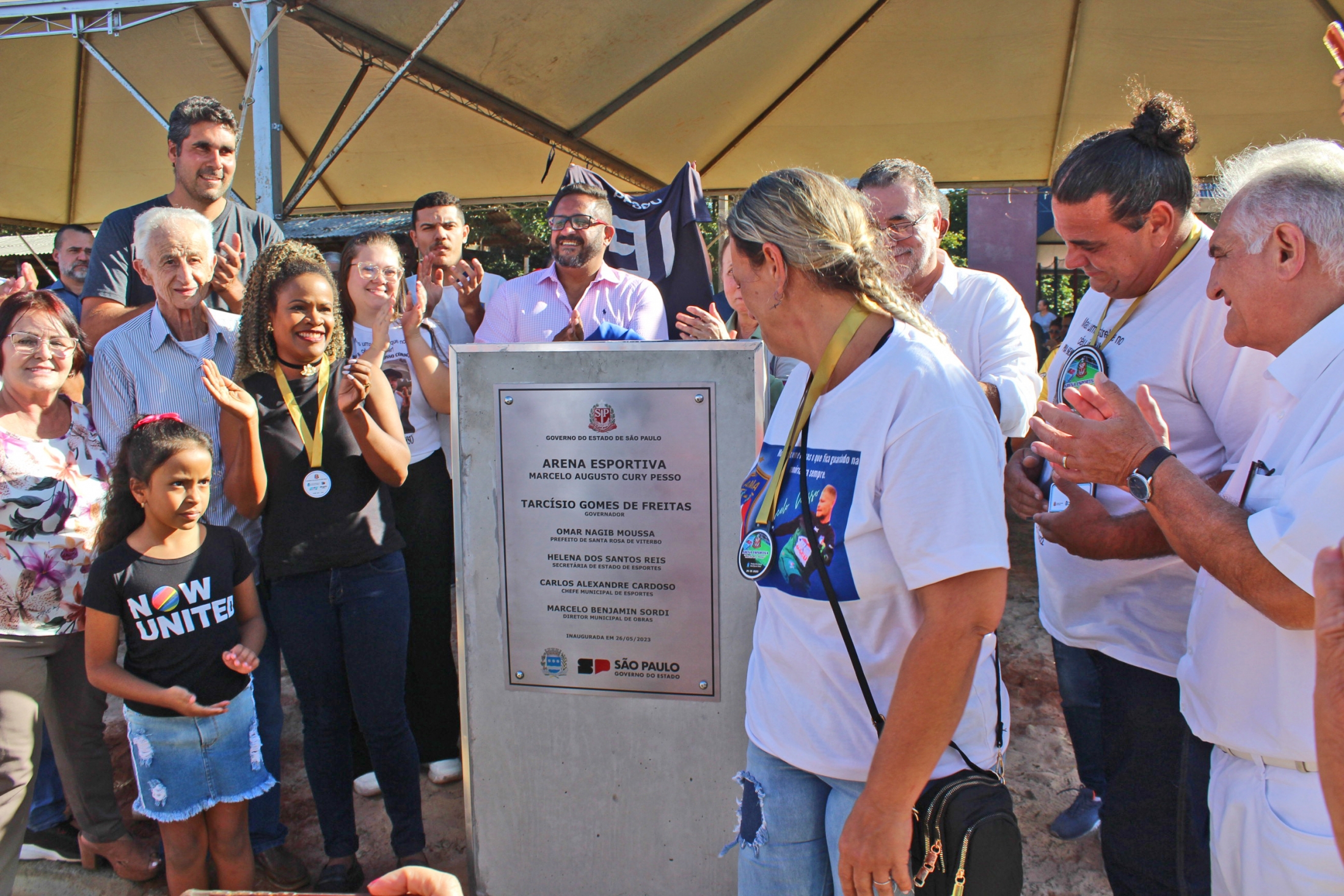 Ao lado da Secretária de Estado de Esportes, a Coronel Helena dos Santos Reis, o Prefeito Omar Nagib inaugurou a Arena Esportiva “Marcelo Augusto Cury Pesso” na tarde desta sexta-feira, 26 de maio, em cerimônia marcada por emoções, lágrimas, recordações e homenagens, além da entrega simbólica de mais uma importante conquista da administração Omar Nagib e Dr. Marco Antônio Di Serio, para a população de Santa Rosa.
