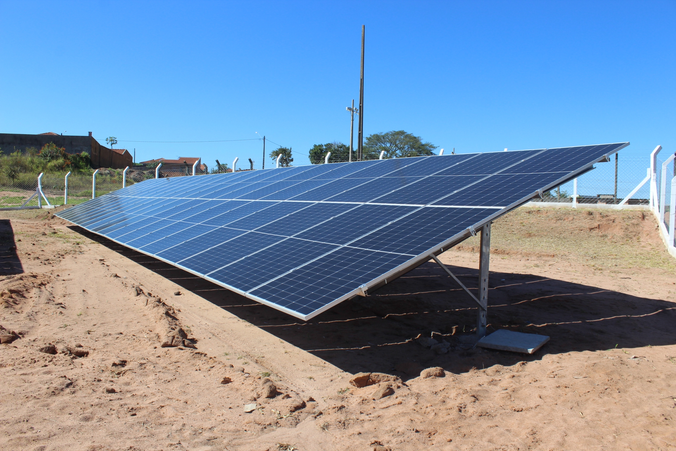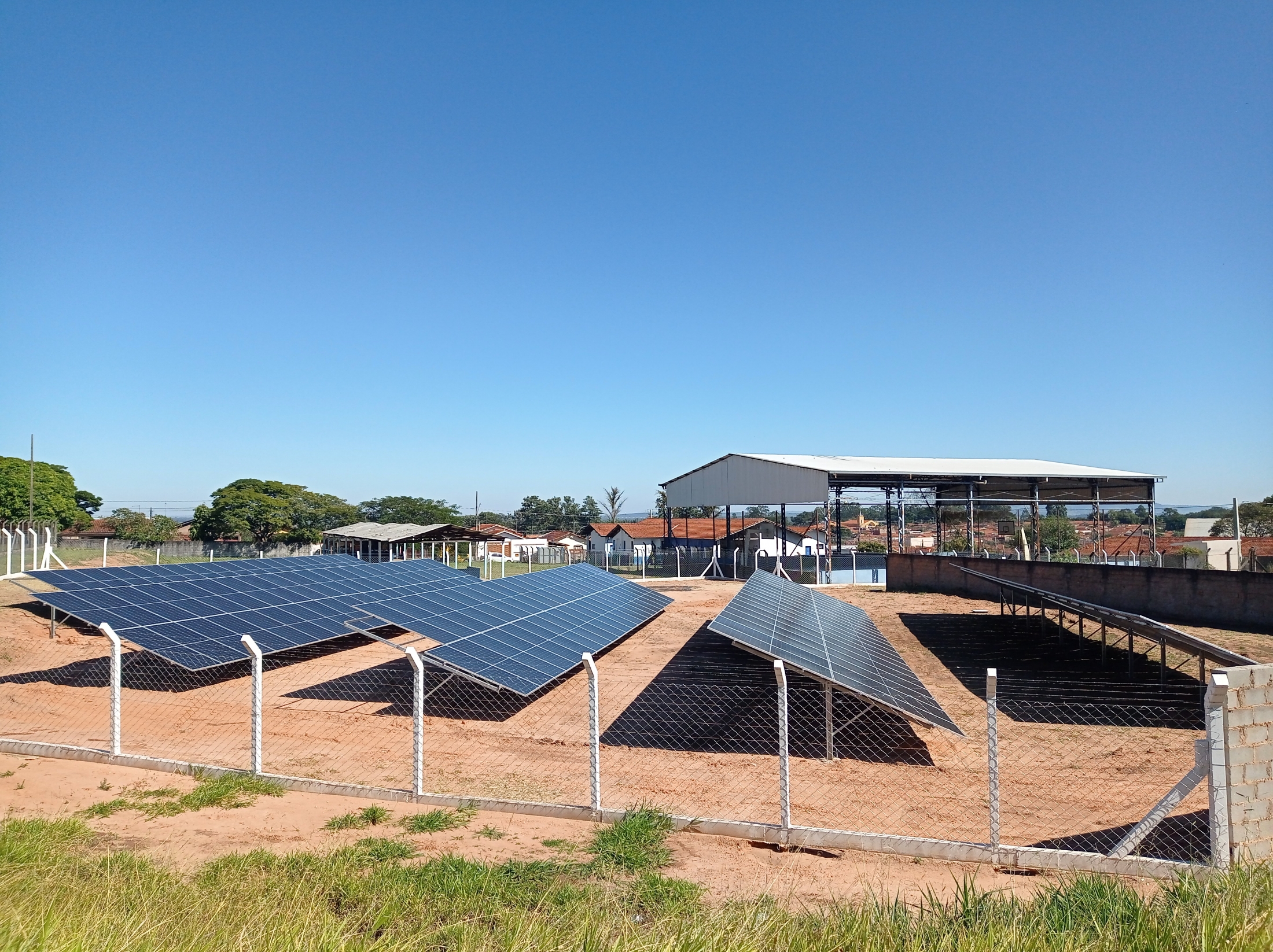 Classificada como Microgeração, segundo a legislação vigente, a Usina Fotovoltaica 75 kW da Prefeitura Municipal já está em funcionamento e tem capacidade para geração média de 14.000 kWh/mês, destinada à compensação da energia consumida nas Unidades Municipais de Ensino.