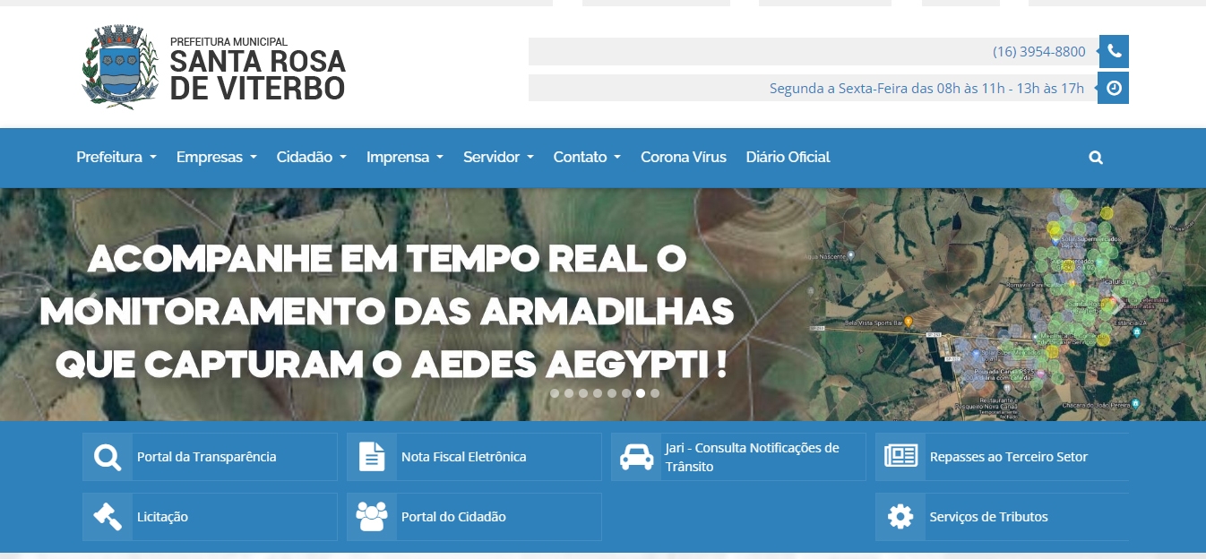 Através do endereço eletrônico https://santarosa.sp.gov.br/site/ ou pelo link https://mi2.miaedes.com.br/client/4199/region/531154/ondeestaoaedes/semanal, os internautas podem acompanhar, em tempo real, os registros de captura do mosquito da Dengue em Santa Rosa de Viterbo. De responsabilidade da Ecovec, o sistema online fornece informações sobre a presença ou não do Aedes aegypti em cada região do município.
