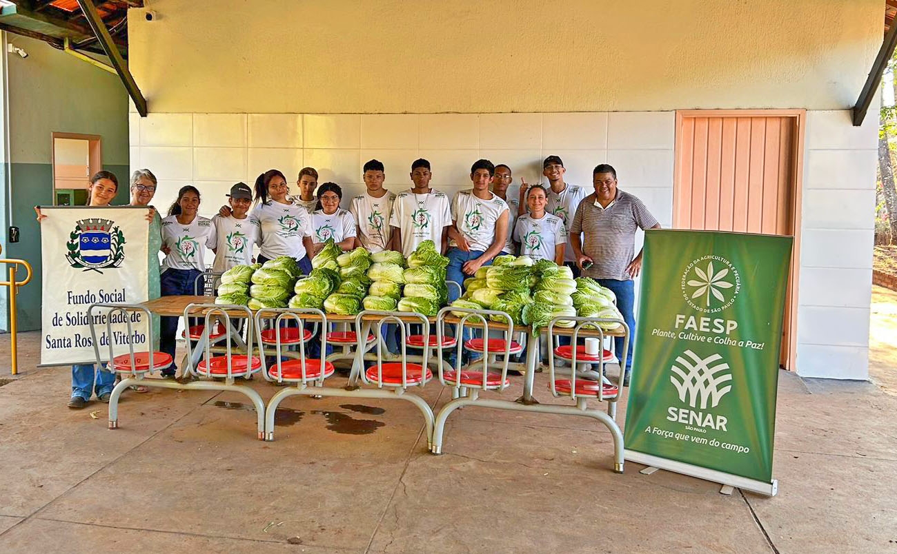 Jovens Agricultores do Futuro plantam, colhem e doam verduras para o Fundo Social de Santa Rosa de Viterbo