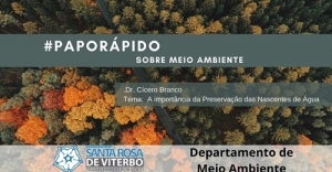 O Setor de Meio Ambiente da Prefeitura de Santa Rosa de Viterbo preparou uma série de vídeos especiais para celebrar o mês do meio ambiente com relatos e experiências vividas por diversos profissionais que atuam nessa área tão importante.