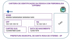 A Prefeitura Municipal de Santa Rosa de Viterbo, através do Departamento de Saúde, informa que os pacientes santa-rosenses portadores de fibromialgia já podem solicitar a Carteira de Identificação da Pessoa com Fibromialgia (CIPFIBRO). O documento garante o acesso a direitos especiais como vagas em estacionamentos e atendimento preferencial em órgãos públicos, empresas públicas, empresas concessionárias de serviços públicos e empresas privadas.