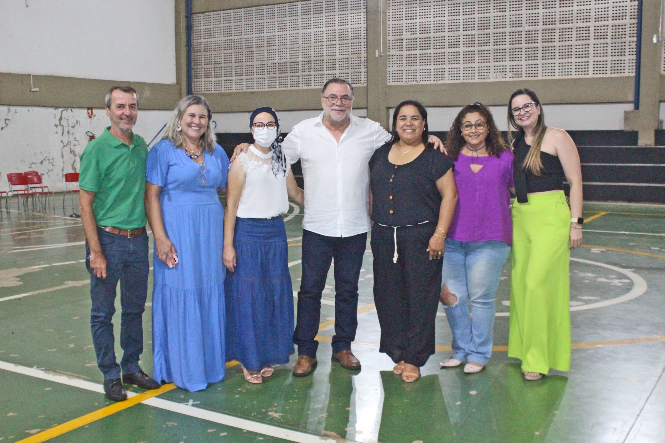 Estiveram presentes da Cerimônia de Abertura da Feira os vereadores Cidinha e Marinho Titarelli, a Chefe de Setor de Gestão Educacional, Cristiane Titareli Salviato, a Chefe de Setor de Educação Básica, Karina Castro Gil, a Chefe do Setor de Programas Educacionais, Ana Luiza Monici, o Diretor Municipal de Educação, Marcos Ferri, e o Prefeito Omar Nagib.