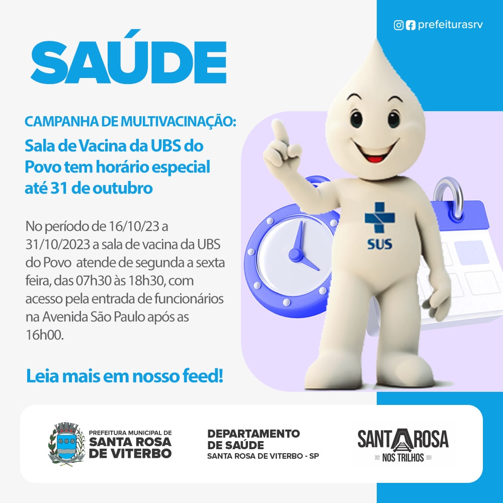 Desde ontem,16, a sala de vacina da UBS do Povo atende de segunda a sexta feira, das 07h30 às 18h30, com acesso pela entrada de funcionários na Avenida São Paulo após às 16h00.