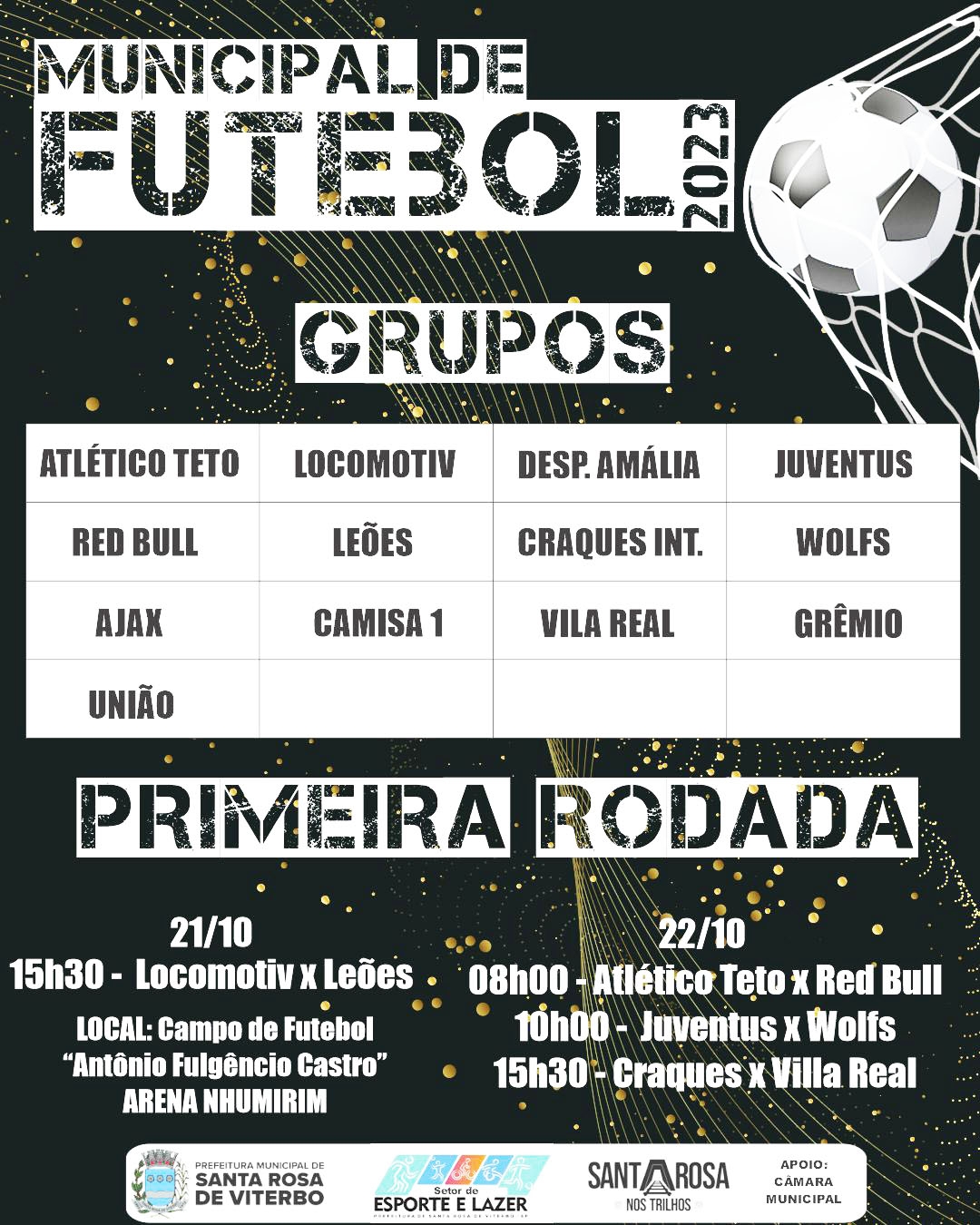 Confira na tabela os grupos e os jogos da primeira rodada do Municipal 2023.