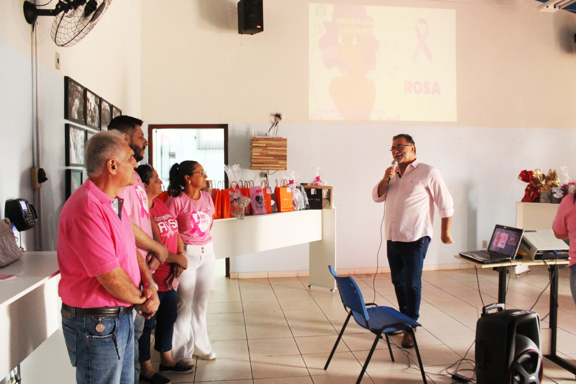 O Departamento de Saúde da Prefeitura de Santa Rosa de Viterbo promoveu neste sábado uma importante mobilização para conscientização e prevenção contra o Câncer de Mama. A programação contou orientações, vacinação, coleta preventiva, atendimento com ginecologista, exames de ultrassom, dia de beleza no ambulatório do bairro Nosso Teto, testes rápidos de HIV, Sífilis e de Glicemia, além de palestra com a médica Gabrielly Cabral, que compartilhou informações importantes aos presentes no Centro Cultural e frisou a importância acerca do autocuidado.