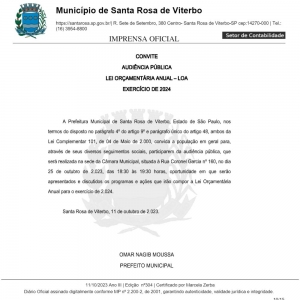 A Prefeitura Municipal de Santa Rosa de Viterbo, Estado de São Paulo, nos
