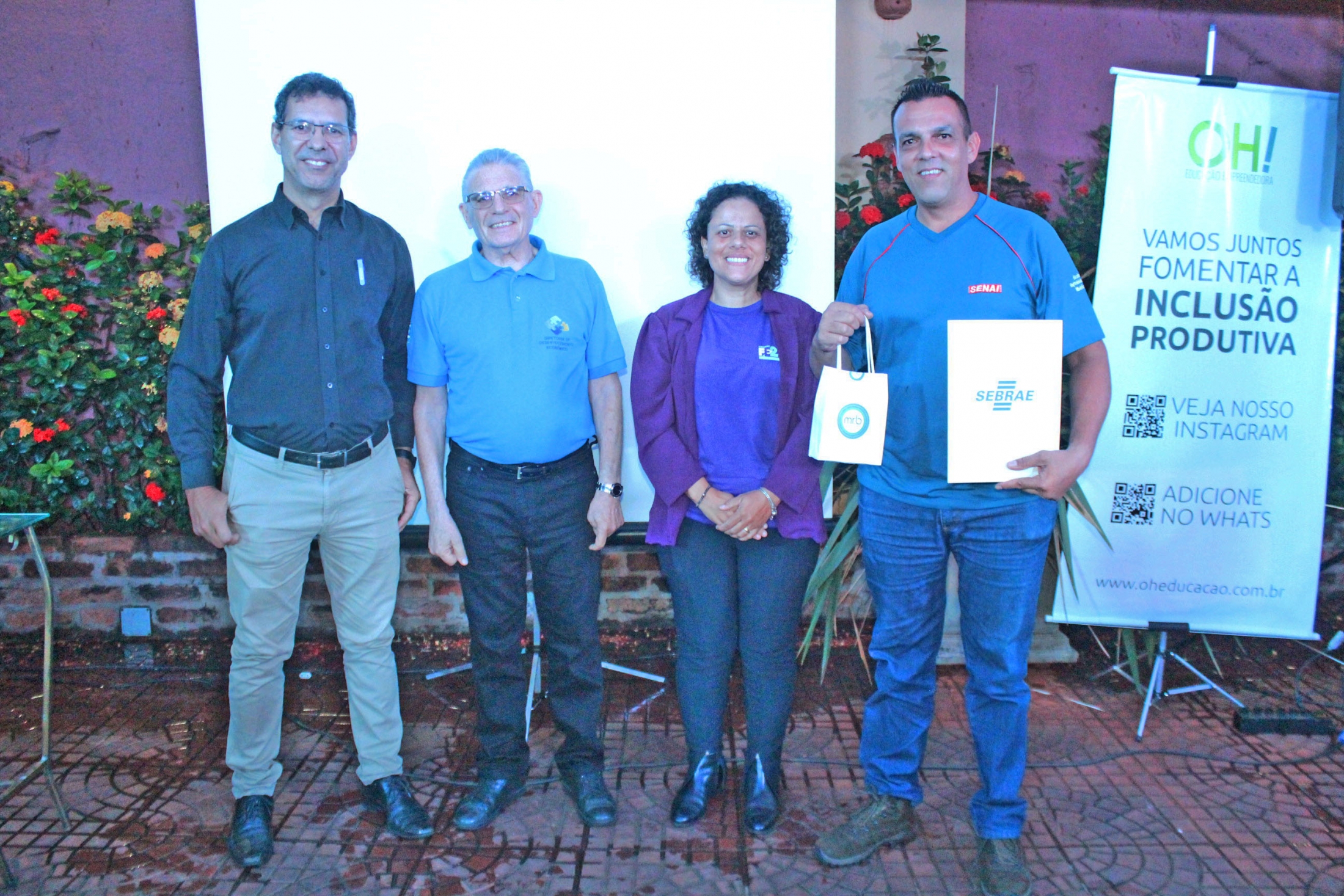 A cerimônia de entrega dos certificados aconteceu na noite da última sexta-feira, ao final da 2ª Feira de Desenvolvimento de Santa Rosa de Viterbo. Além de familiares dos formandos estiveram presentes a Gestora do SEBRAE Aqui do Escritório Regional de Ribeirão Preto, Elisângela Doroteu Almeida, o Professor Esdras Barbosa, do SENAI, os vereadores Luis dos Reis Augusto (Bode), Manuil Egidio Leal de Souza e Marinho Titarelli, a coordenadora do CRAS, Kátia Borges, Emílio José Costa (Diretor de Desenvolvimento Social) e Arnaldo Cersossimo (Diretor de Desenvolvimento Econômico), o vice-Prefeito Dr. Marco Di Serio e o Prefeito Omar Nagib.