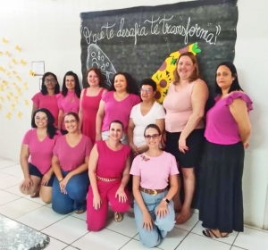 Servidores dos Departamentos de Educação e de Saúde vestem rosa em apoio ao Outubro Rosa