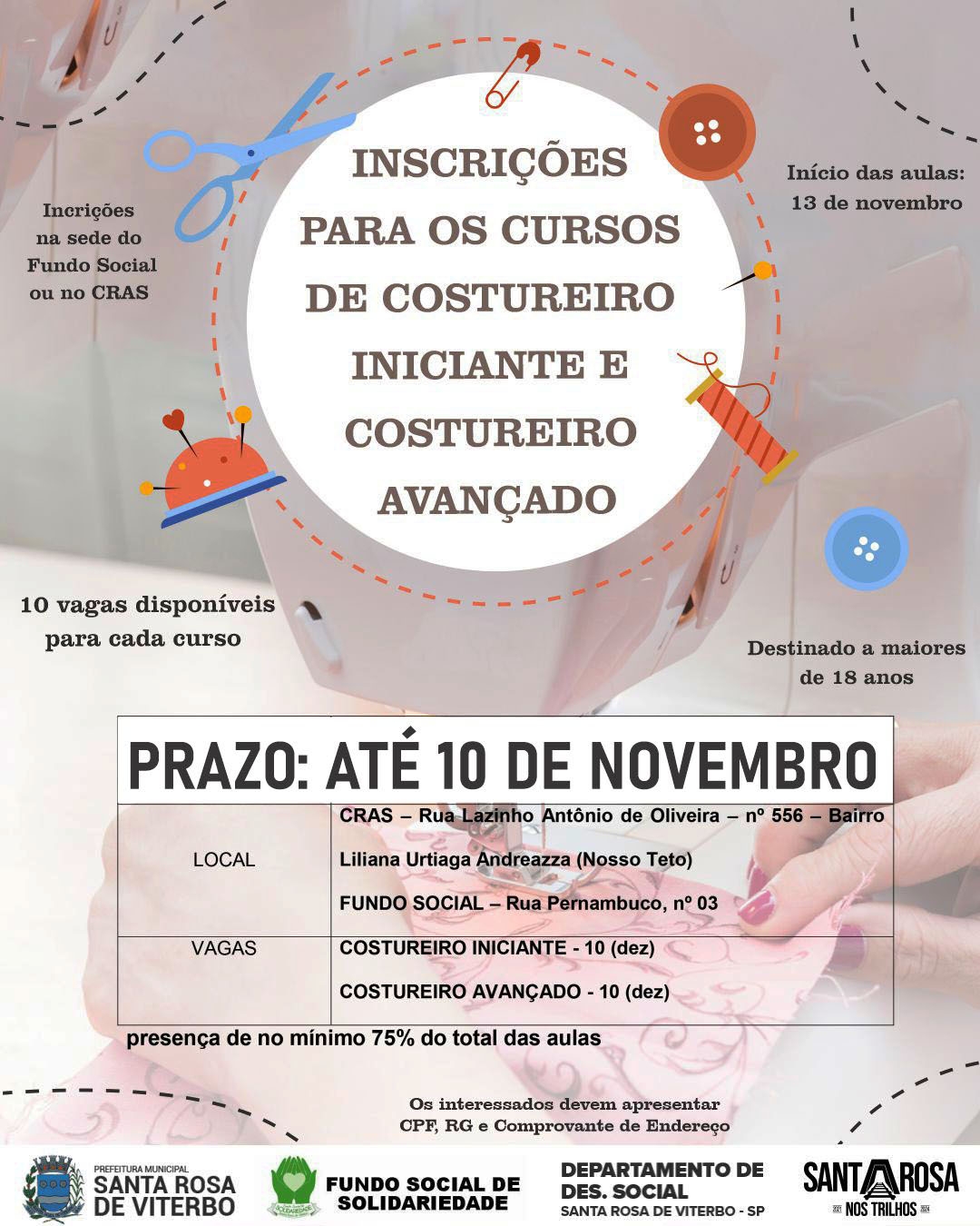 O curso é destinado a maiores de 18 anos que desejam aprender as técnicas básicas da costura e iniciar sua jornada nesse ofício criativo e prático. As aulas serão de segunda a sexta-feira, em horário a ser definido e serão ministradas por profissional experiente e dedicado, garantindo que os participantes adquiram as habilidades necessárias para se tornarem costureiros iniciantes qualificados.
