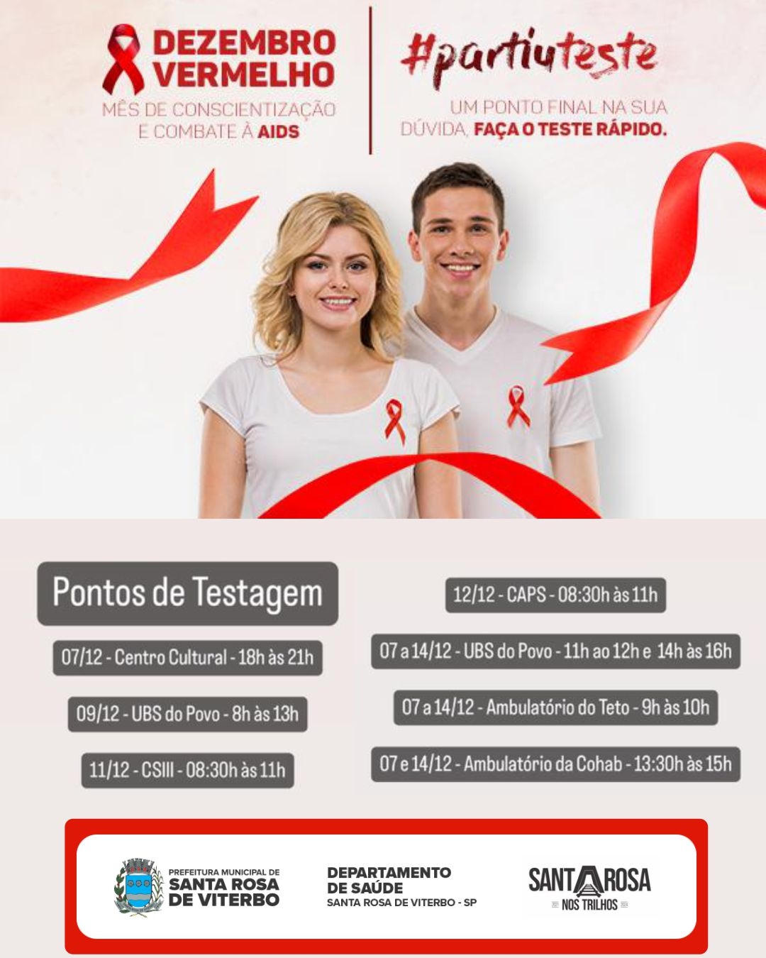 Departamento de Saúde informa horários e Postos para testagem de HIV/Aids