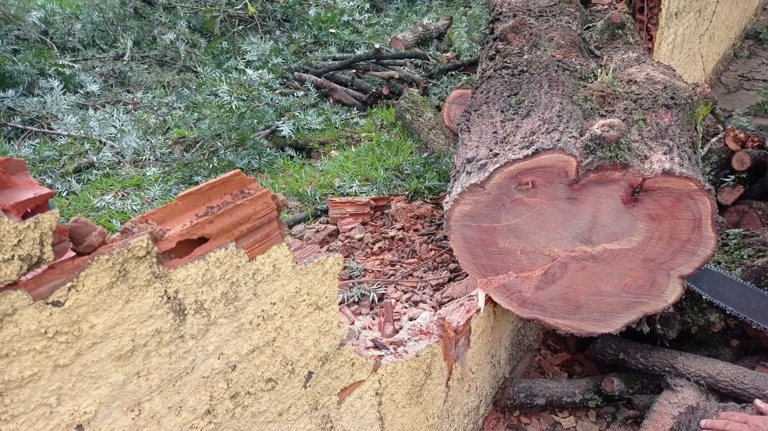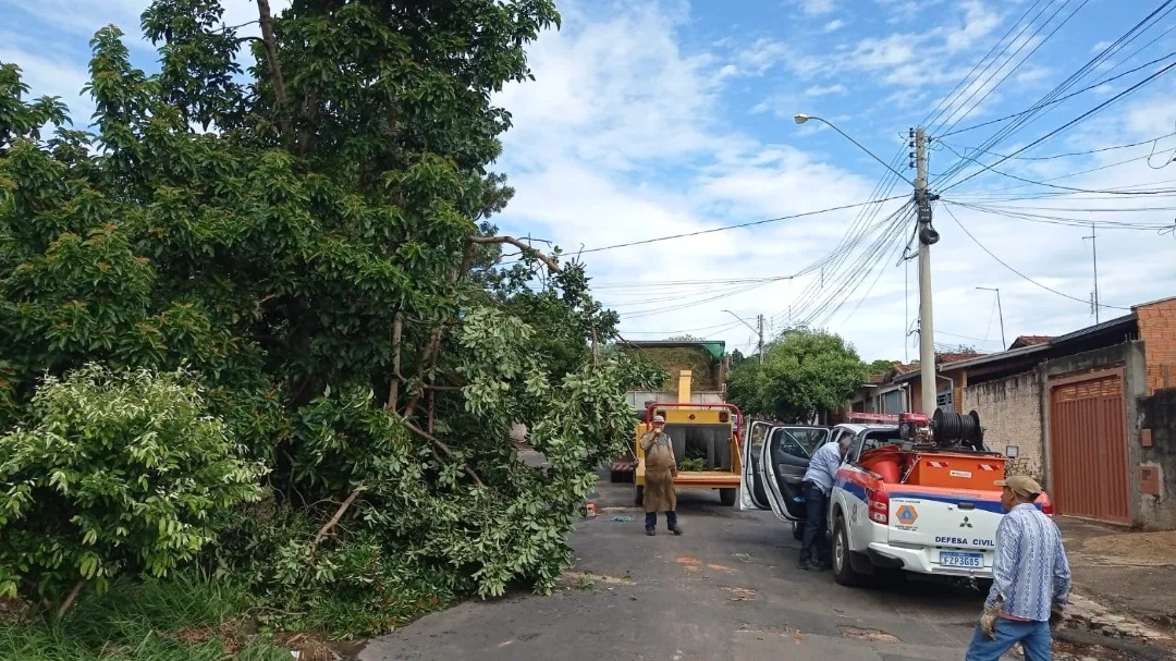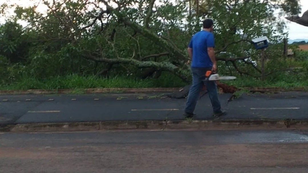 A Defesa Civil e o Setor de Serviços Públicos atuam no serviço de limpeza e estão cortando e retirando árvores que caíram nas vias públicas em razão dos ventos.