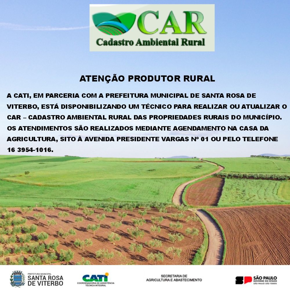 A CATI, EM PARCERIA COM A PREFEITURA MUNICIPAL DE SANTA ROSA DE VITERBO, ESTÁ DISPONIBILIZANDO UM TÉCNICO PARA REALIZAR OU ATUALIZAR O CAR – CADASTRO AMBIENTAL RURAL DAS PROPRIEDADES RURAIS DO MUNICÍPIO.