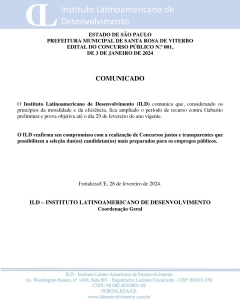 O Instituto Latinoamericano de Desenvolvimento (ILD) comunica que, considerando os