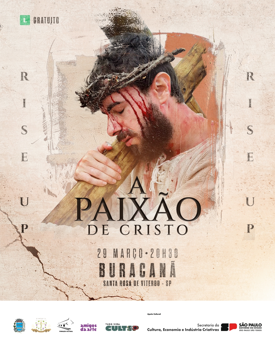 A Paróquia de Santa Rosa de Viterbo, o Departamento de Cultura e a Fundação Cultural de Santa Rosa de Viterbo celebram a aprovação da Encenação da Paixão de Cristo do “Buracanã” pelo Governo do Estado de São Paulo, através da Secretaria de Cultura, Economia e Industria Criativas da Associação Amigos da Arte e Tudo Vira CultSP, com um belíssimo espetáculo para a Semana Santa.