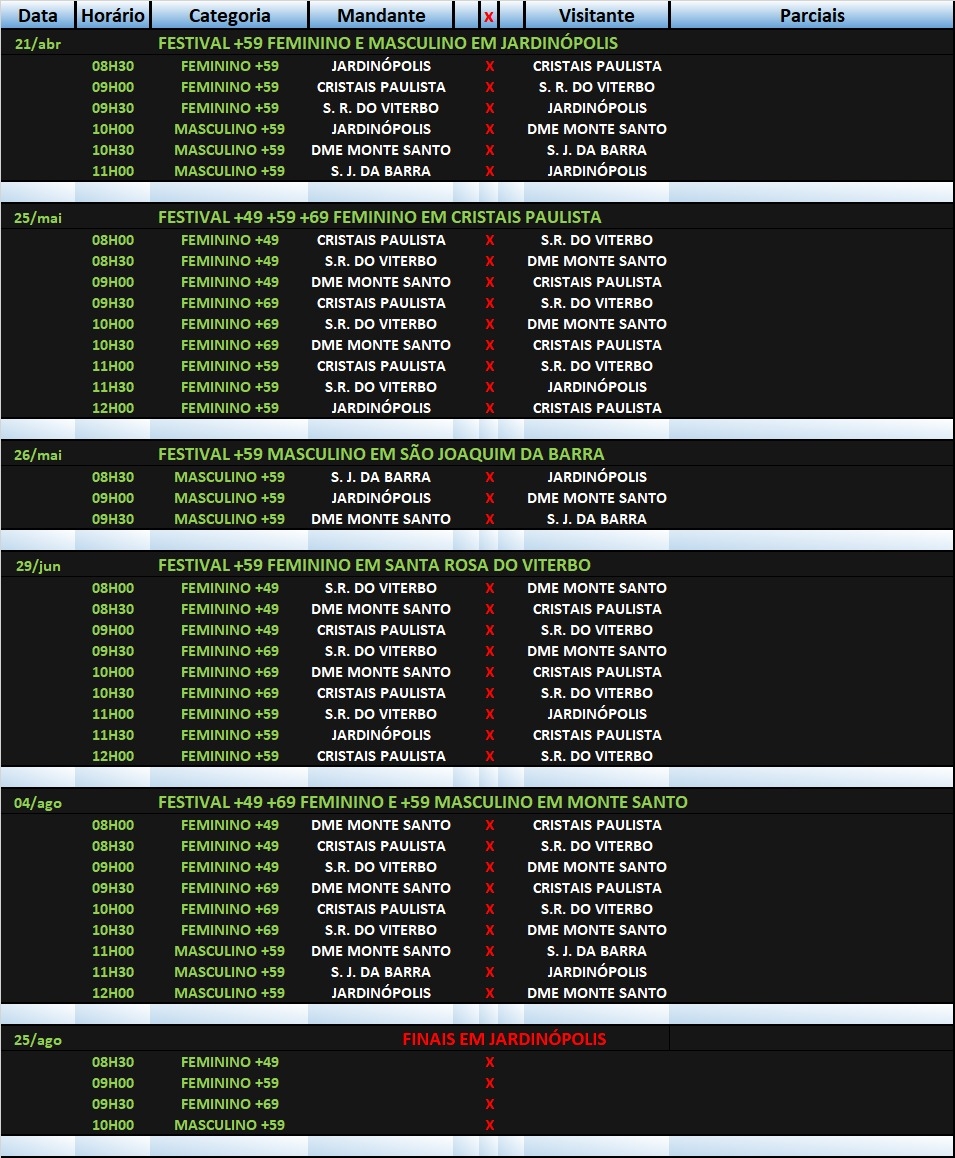 SEGUE A TABELA DE JOGOS: