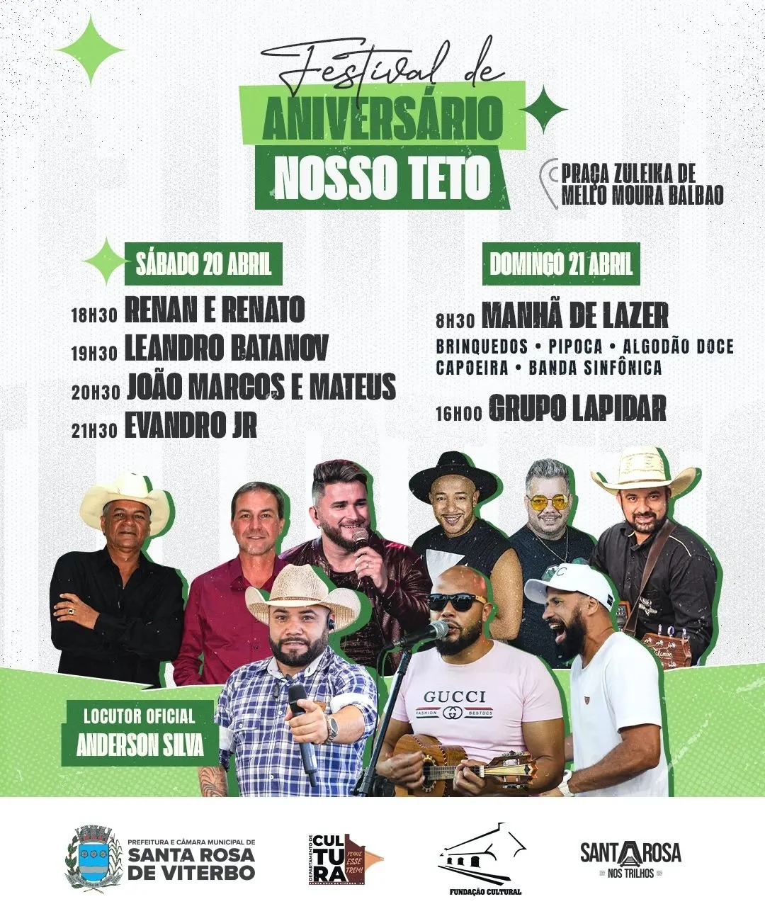 Shows ao vivo, Manhã de Lazer e a presença da Feira de Artesanato.