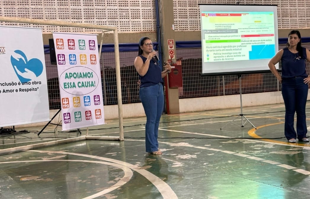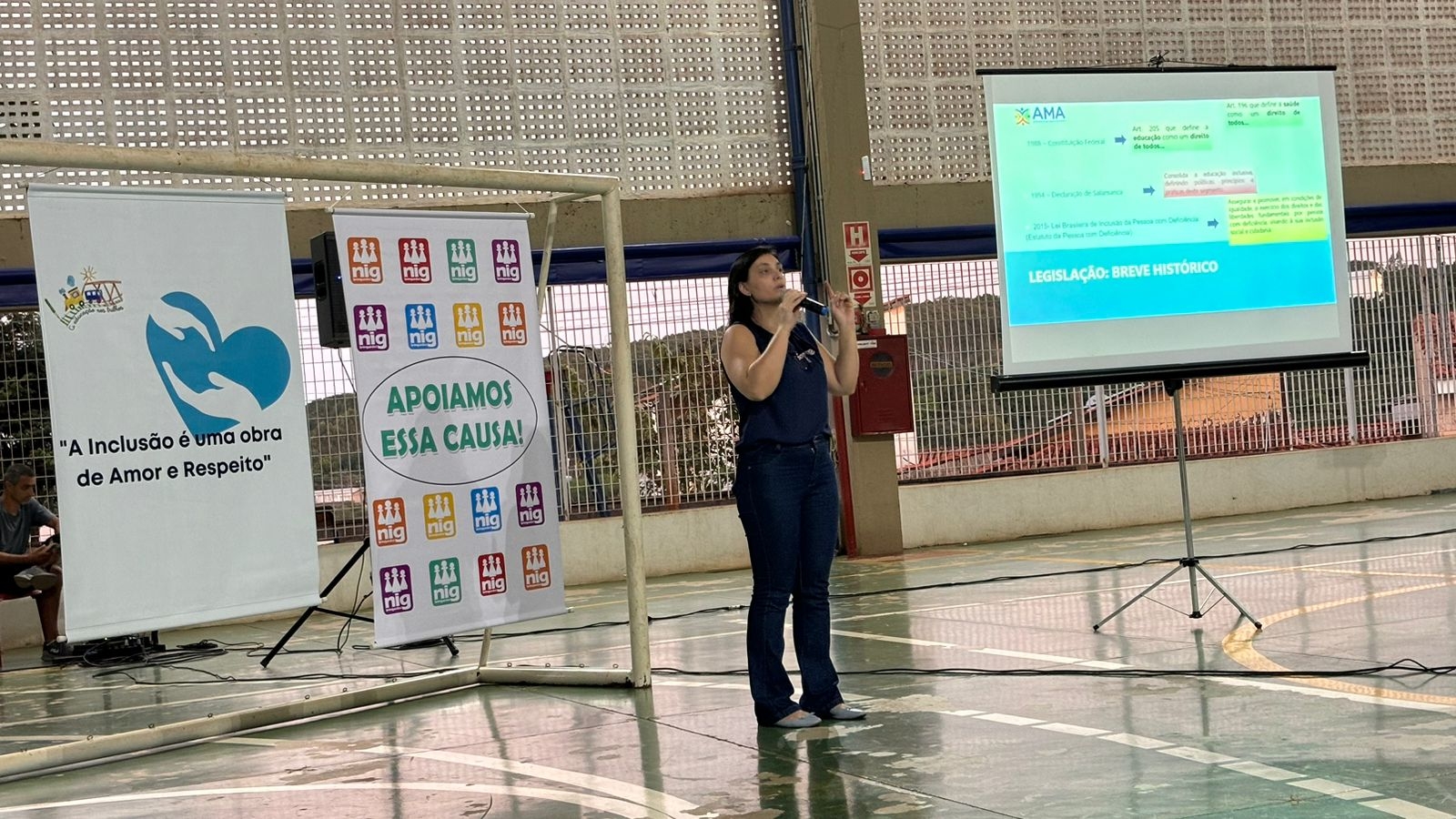 Buscando informações sobre práticas pedagógicas inclusivas, o Departamento de Educação promoveu ontem, dia 29 de abril, uma palestra formativa para diretores, coordenadoras e todos os profissionais da Rede Municipal de Ensino. Foram momentos para atualização de conhecimento, troca de experiências e também de aprendizagens com as especialistas da AMA, de Ribeirão Preto, sobre estratégias para acolher e incluir todos os alunos independentemente de suas necessidades, o que legalmente deve ser oferecido como adaptação de atividades e materiais pedagógicos, elaboração do PEI e a promoção da igualdade e da valorização da diversidade na sala de aula.