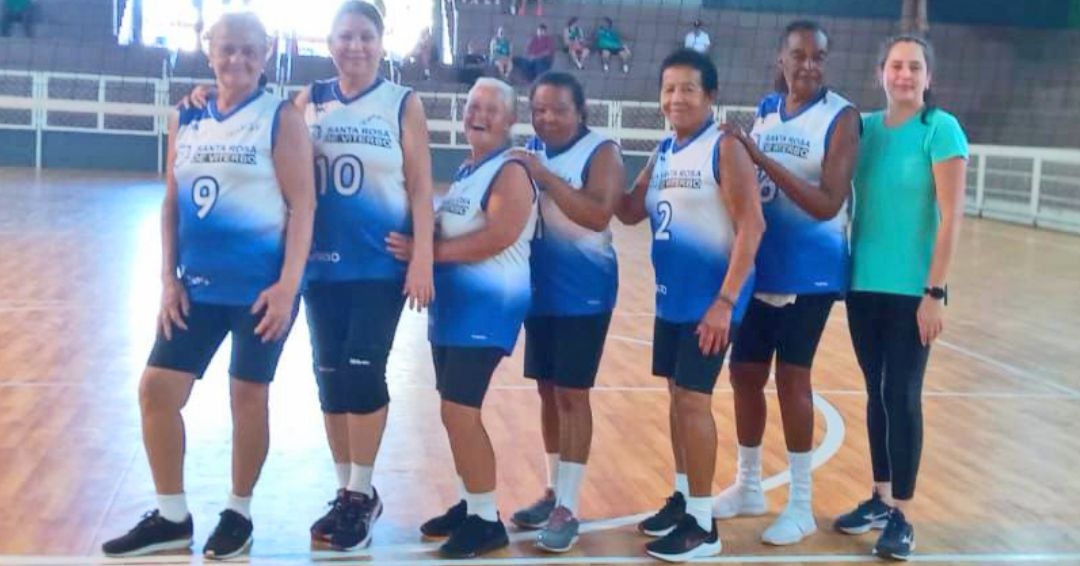 O Prefeito Omar Nagib prestigiou o treino da equipe de vôlei adaptado de Santa Rosa de Viterbo nesta manhã de quarta-feira. Sob a liderança da dedicada professora Franciane Félix de Sandre, temos 21 talentosas atletas, com idades entre 44 e 90 anos, competindo nas categorias 49+, 59+ e 69+.