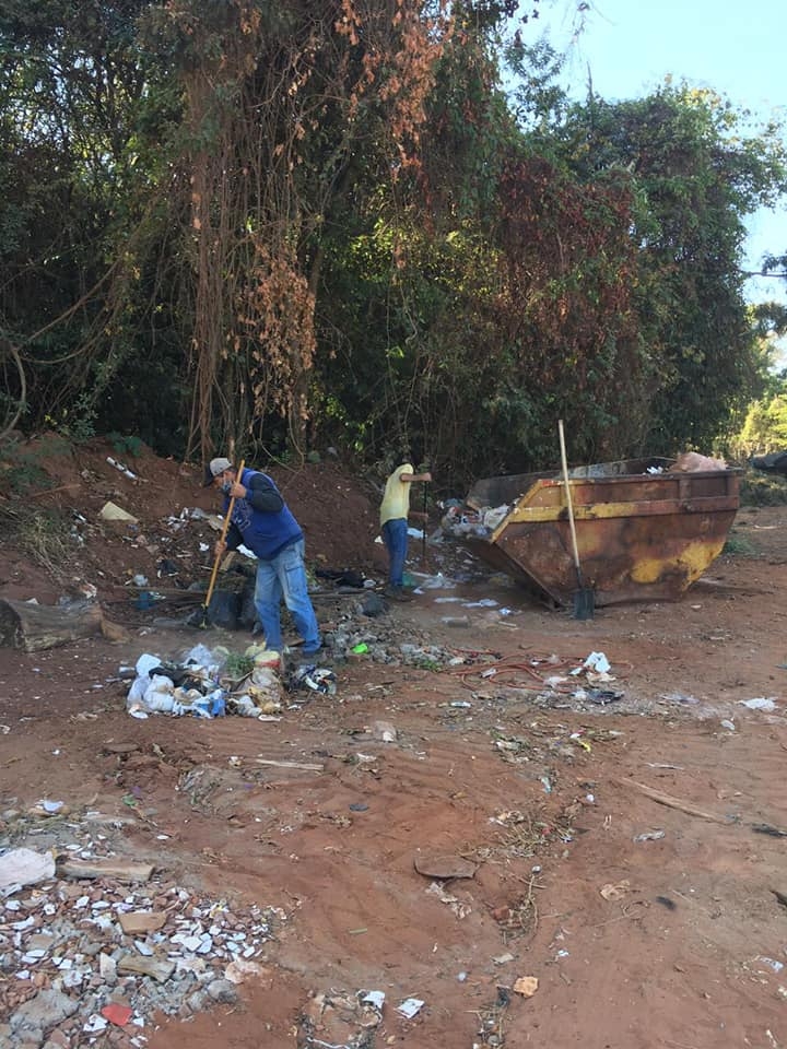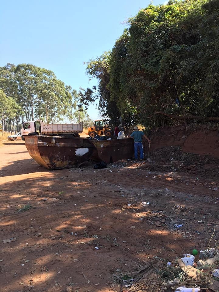 Neste sábado (11) a Prefeitura realizou uma grande ação de limpeza com envolvimento de vários departamentos (Transportes, Serviços Públicos, Meio Ambiente e Obras) em todas as caçambas rurais dos pontos de saída do perímetro urbano para rural.