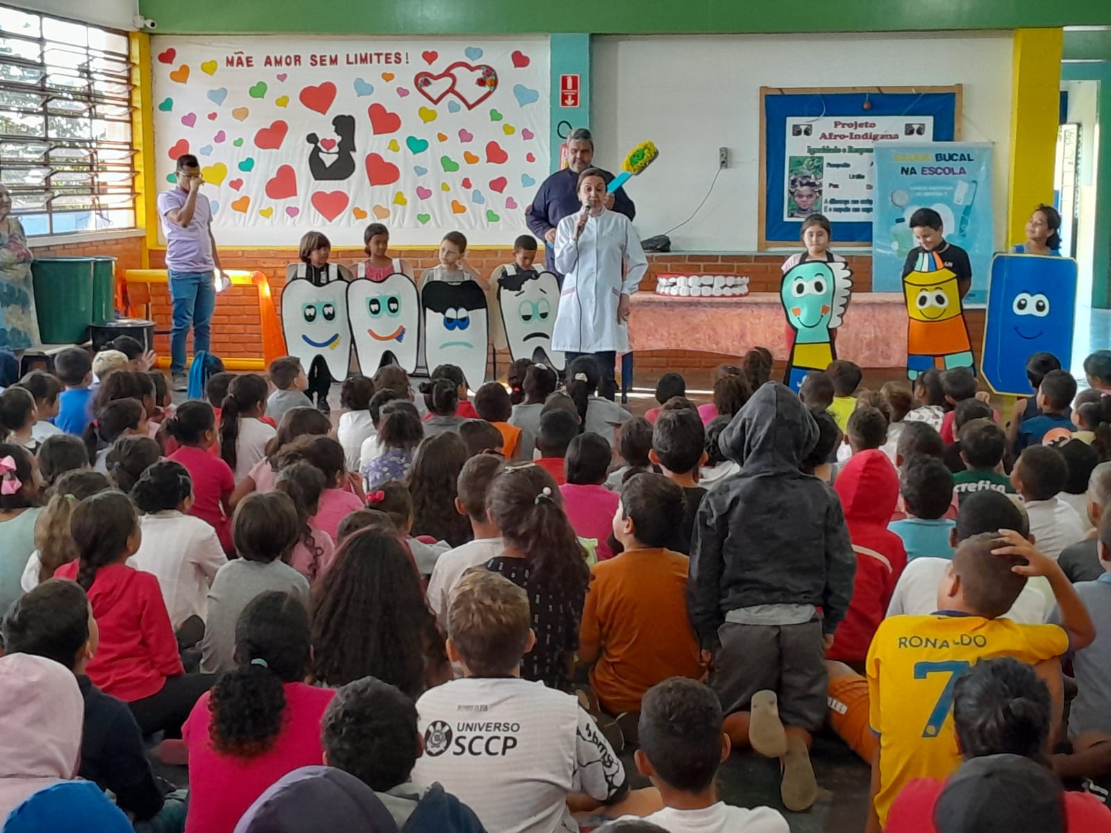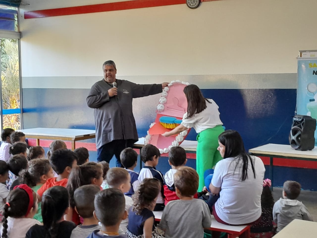 Em parceria com o Departamento Municipal de Educação, a equipe de Saúde Bucal do Departamento Municipal de Saúde, realizou uma campanha de entrega de kits de higiene bucal em 13 escolas municipais, beneficiando 2.150 crianças. Cada kit contém itens essenciais como escova, pasta de dente e fio dental, visando promover a saúde e o bem-estar dos alunos.