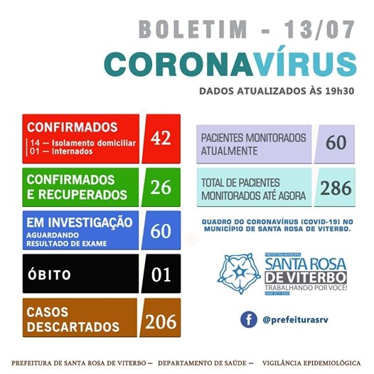 Acompanhe e fique informado da situação dos números do Coronavírus (COVID-19) em Santa Rosa de Viterbo.