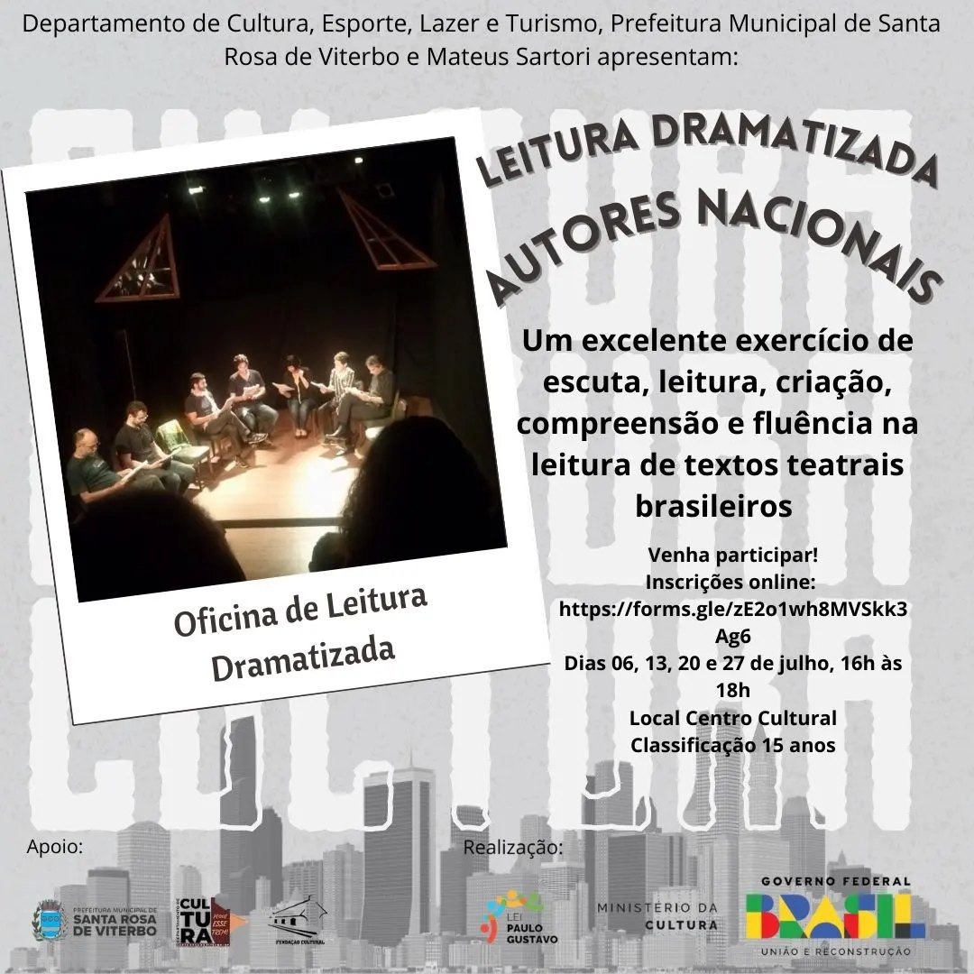 Inscrições abertas para Oficina de Leitura Dramatizada