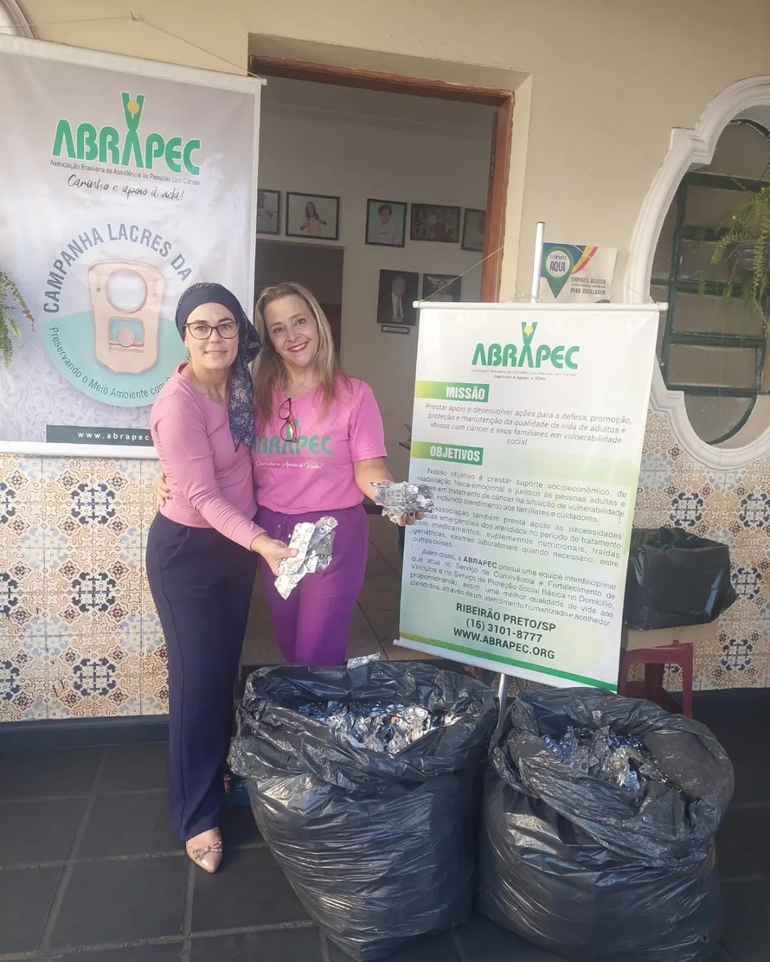 Os blisters de medicamentos e os lacres de alumínio arrecadados pelo Departamento de Meio Ambiente de nossa cidade foram entregues, nesta semana, à Instituição da Abrapec, de Ribeirão Preto. Esta é uma Instituição Brasileira de apoio ao tratamento da pessoa com câncer, com sede na Rua Garibaldi, 298, Centro, na cidade de Ribeirão Preto, a qual mantém uma parceria com uma empresa de engenharia, em uma atividade solidária. Cada tonelada de blister ou lacre de alumínio é convertida em cadeiras de banho para auxiliar as pessoas em tratamento de câncer.