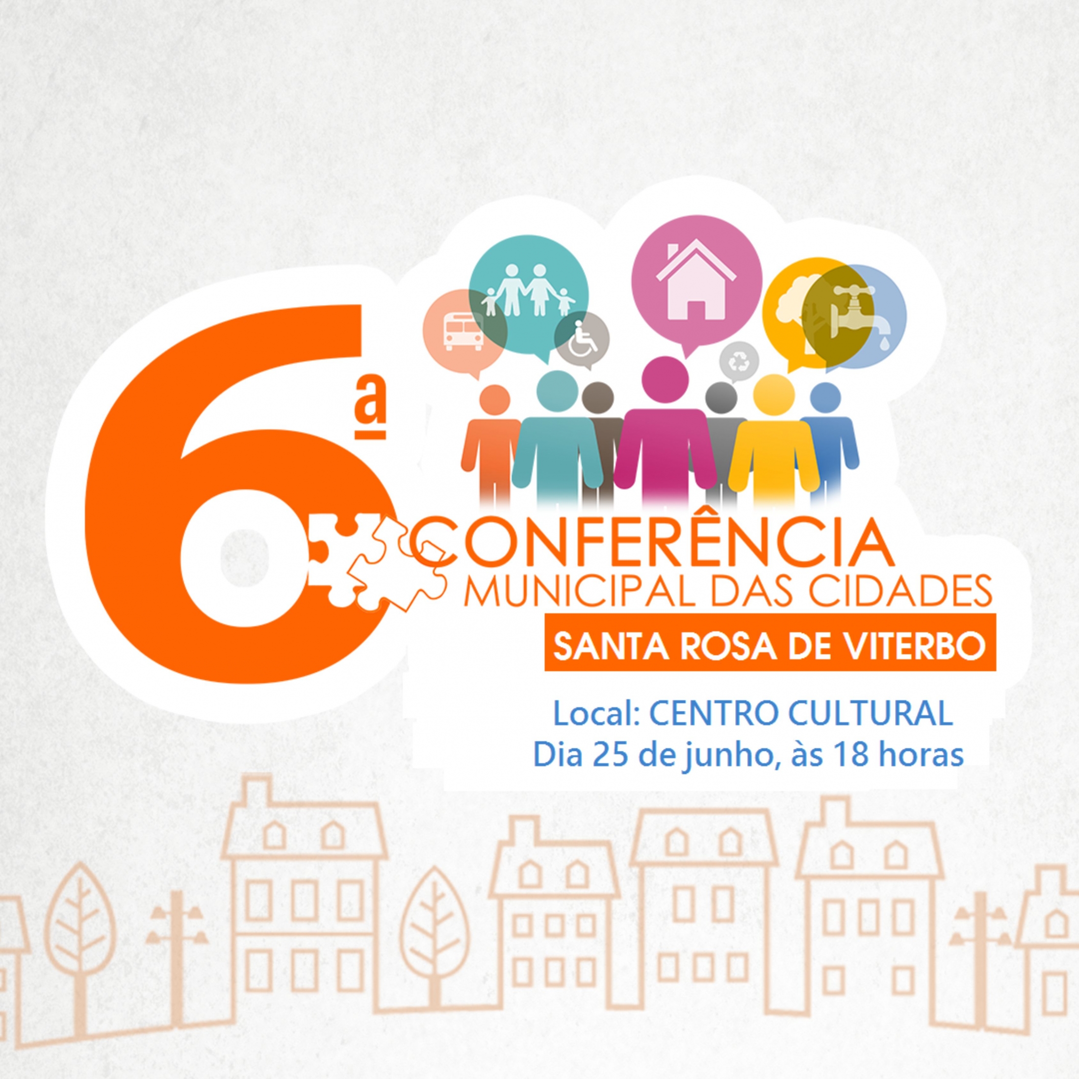Contamos com a participação dos representantes dos poderes público, da sociedade civil organizada e dos munícipes na 6ª CONFERÊNCIA MUNICIPAL DA CIDADE DE SANTA ROSA DE VITERBO, que desenvolverá seus trabalhos a partir do tema "Construindo a Política de Desenvolvimento Urbano: caminhos para cidades inclusivas, democráticas, sustentáveis e com justiça social".
