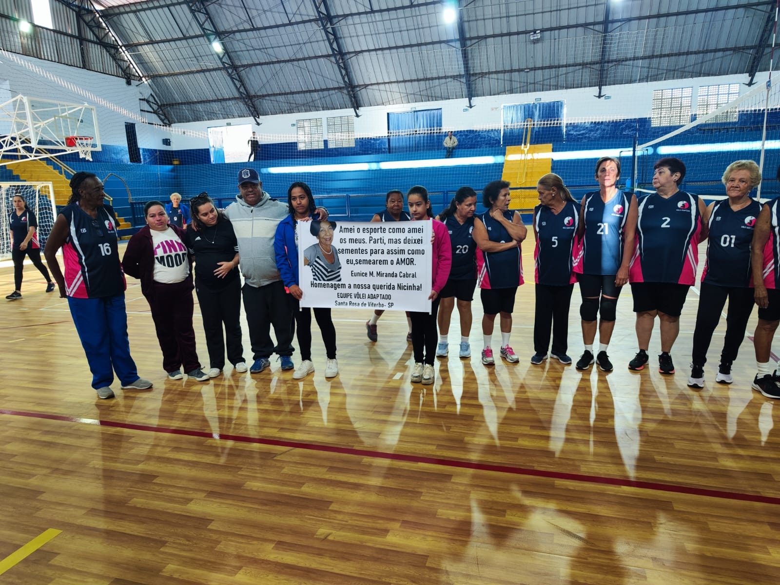 Antes das emocionantes partidas realizadas, um momento tocante marcou o início dos jogos. Foi feita uma comovente homenagem à senhora Nicinha, uma atleta querida do time local de vôlei adaptado que nos deixou recentemente. Em um gesto de profundo respeito e saudade, estavam presentes seus filhos e netas, compartilhando memórias preciosas e celebrando o legado de uma mulher que sempre inspirou com seu espírito competitivo e sua dedicação ao esporte. Ao final dos jogos, além dos resultados alcançados, ficou claro que a senhora Nicinha continuará viva no coração de todos, inclusive das atletas que tiveram o privilégio de conhecê-la e jogar ao seu lado.