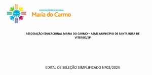 Link para dowload do edital: https://santarosa.sp.gov.br/pagina/261_ASSOCIACAO-EDUCACIONAL-MARIA-DO-CARMO-AEMC-MUNICIPIO-DE-SANTA-ROSA-DE-VITERBO.html.