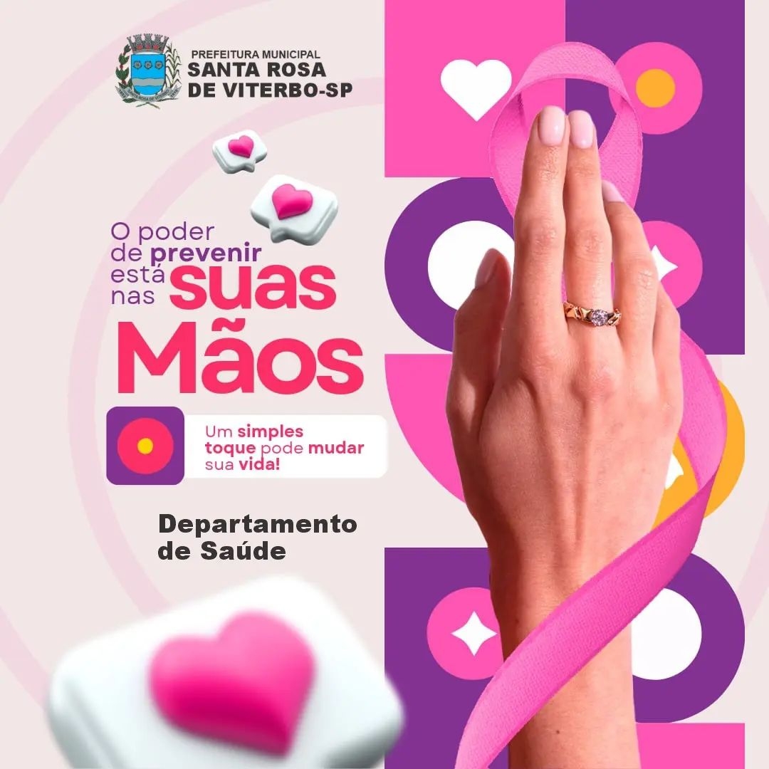 Neste sábado, 19 de outubro de 2024, a Prefeitura de Santa Rosa de Viterbo, por meio do Departamento de Saúde, promove uma programação especial em alusão ao Outubro Rosa. As unidades de saúde, incluindo a UBS do Povo, o Ambulatório do Nosso Teto e o Ambulatório da COHAB, estarão abertas das 8h às 16h, oferecendo diversos serviços voltados à saúde da mulher.