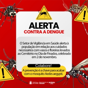 O Setor de Vigilância em Saúde alerta à população em relação aos cuidados necessários com vasos e floreiras levados ao Cemitério no Dia de Finados, celebrado em 2 de novembro. Esses itens podem se tornar criadouros para o mosquito Aedes aegypti, transmissor de doenças como Dengue, Zika e Chikungunya.