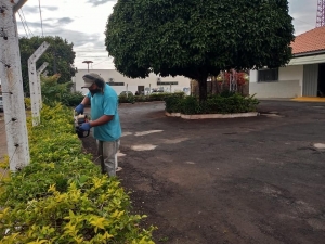 Além da higienização dos pontos de maior fluxo de pessoas contra a disseminação do novo coronavírus, também aconteceram limpeza de sarjetas e guias, roçamentos, coleta de lixo e podas de árvores e arbustos.