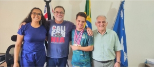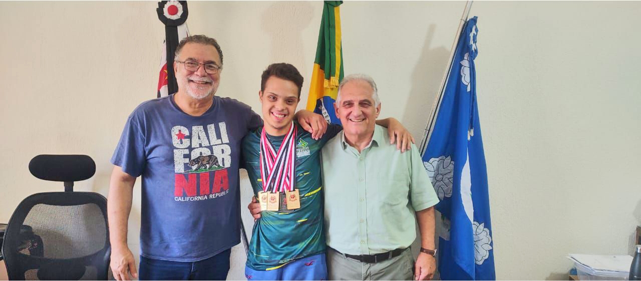 O Prefeito Omar Nagib e o vice-prefeito Dr.Marco Antônio Di Serio receberam, com grande entusiasmo, o paratleta Arthur Sepryano Rocha Rodrigues, que voltou de uma competição com excelentes resultados, trazendo para a cidade mais cinco medalhas conquistadas nos Jogos Regionais. Arthur, acompanhado de sua mãe, Fabiana Rodrigues, foi recebido com alegria e reconhecimento pelo desempenho excepcional nas modalidades em que competiu.