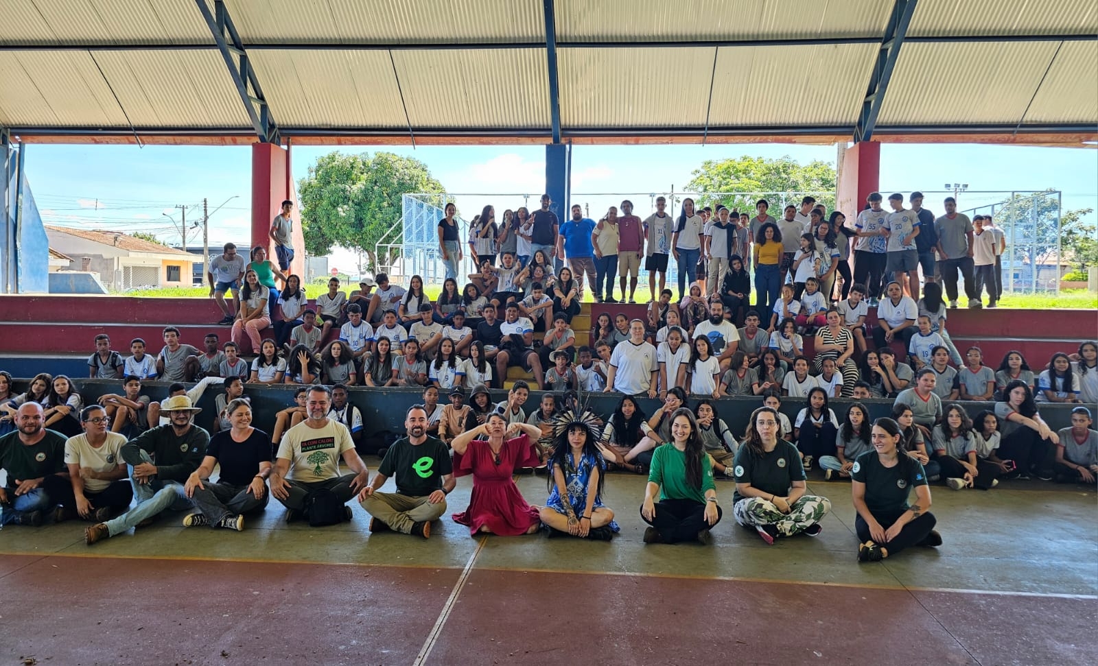 A visita de Txai Suruí foi uma iniciativa do Programa de Educação Ambiental em parceria com a Prefeitura de Santa Rosa de Viterbo, o Instituto Nova Era e o Sesc Ribeirão, fortalecendo o diálogo entre os conhecimentos indígenas e as ações educativas locais.