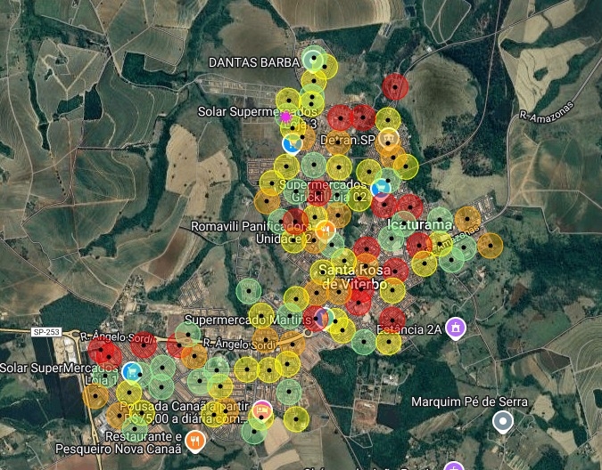 Entenda o quadro: Círculo verde: Sem captura, Círculo amarelo: 1 captura, Círculo laranja: 2 capturas e Círculo vermelho: 3 ou mais capturas. Acompanhe em tempo real através do link: https://mi2.miaedes.com.br/.../531154/ondeestaoaedes/semanal