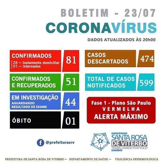 ─ Acompanhe e fique informado da situação dos números do Coronavírus (COVID-19) em Santa Rosa de Viterbo.