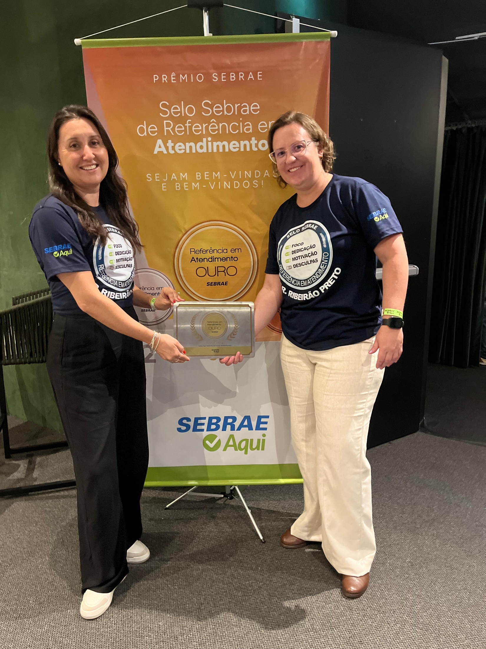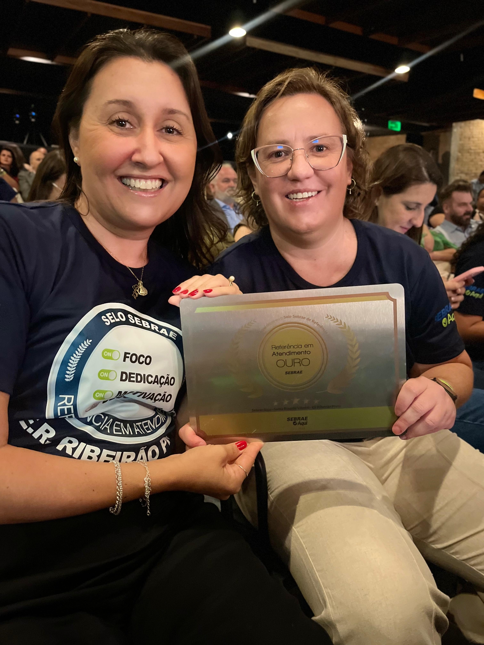 O Selo Sebrae também é um reconhecimento anual que avalia a qualidade do atendimento e as práticas inovadoras implementadas pelas unidades no apoio aos pequenos negócios da região.Entre as unidades premiadas, o Sebrae Aqui de Santa Rosa de Viterbo se destacou ao conquistar o Selo Ouro, graças ao trabalho das agentes Carolina Leal de Moraes e Patrícia Fernandes do Prado Basso, que estiveram presentes no evento para trazer o Ouro para nossa cidade.