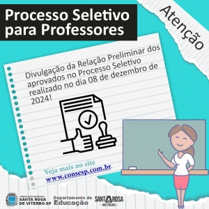 Até a divulgação do resultado final, as atualizações continuarão a ser publicadas no site da Consesp. Após essa etapa, as informações serão divulgadas diretamente pelos canais oficiais da Prefeitura Municipal de Santa Rosa de Viterbo e afixadas nos átrios da administração.