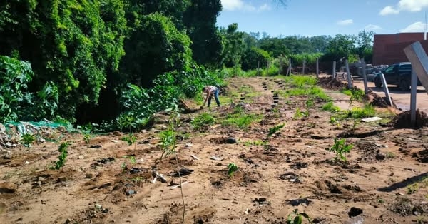 Na manhã desta sexta-feira, o Departamento de Meio Ambiente está realizando o plantio de 95 mudas de árvores e 20 mudas de gengibre azul, visando controlar a erosão em uma Área de Preservação Permanente (APP) localizada próximo à Rua Yeda Tamaki Eleutério, no bairro Parque do Sol Nascente. Esta área, que anteriormente era utilizada para o descarte irregular de entulhos, passa agora por um processo de recuperação ambiental. A ação visa recuperar a vegetação local, proteger o solo e evitar danos ambientais.