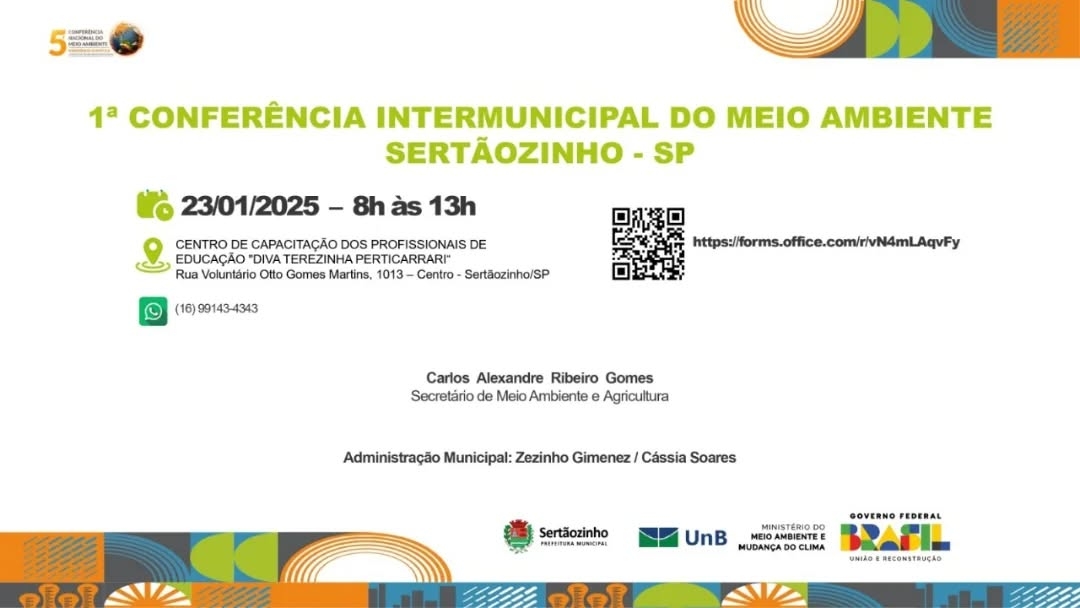 A Diretora de Meio Ambiente do município, Camila Fedel, está presente na 1ª Conferência Intermunicipal de Meio Ambiente, que acontece na manhã desta quinta-feira, 23, em Sertãozinho. O evento reúne representantes de diversas cidades da região para discutir temas relacionados à sustentabilidade e à preservação ambiental.