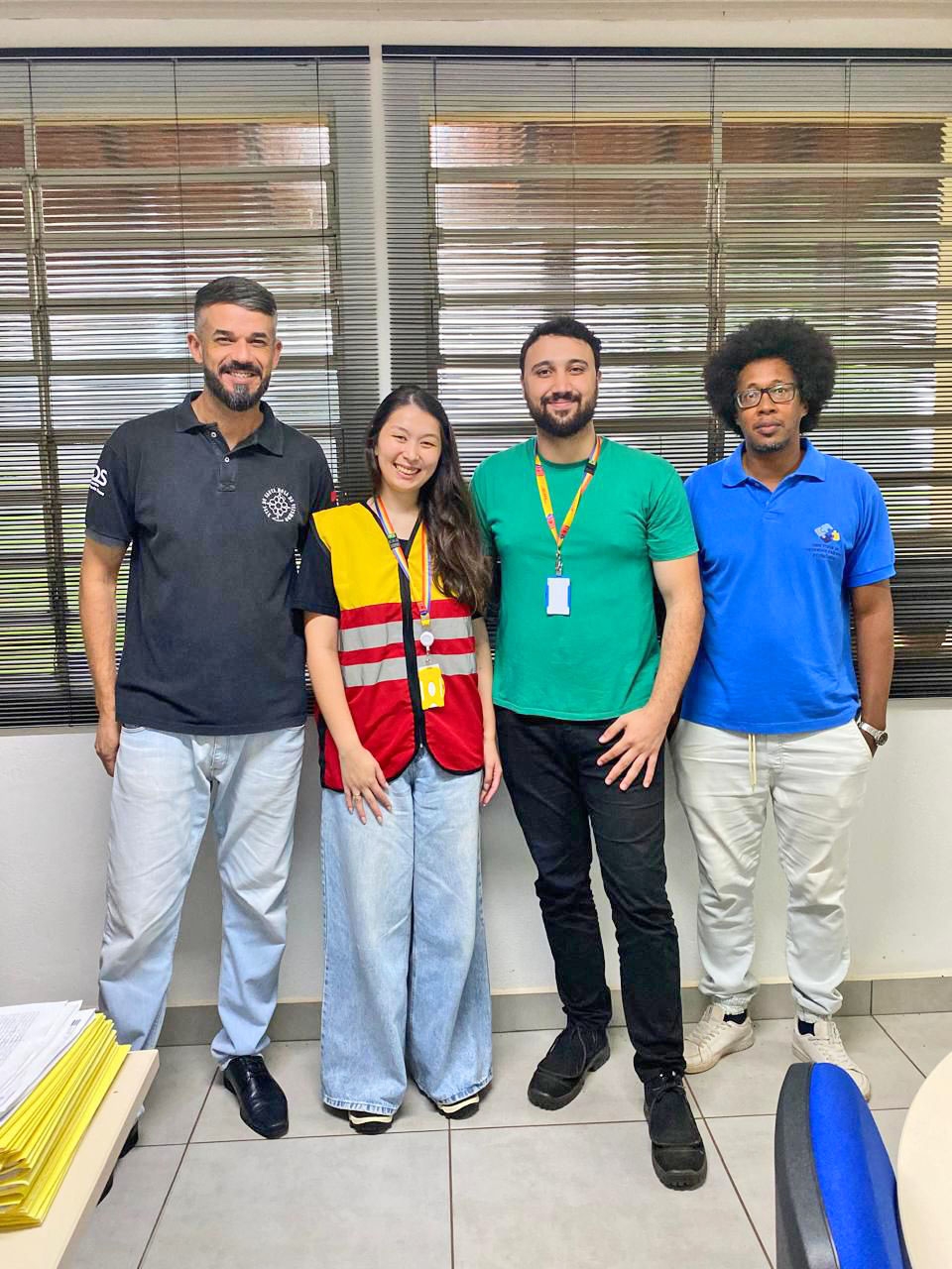 Na foto, o Professor Claudio Pires, Beatriz Shimada, Analista de RH da DHL, Ademir Barbosa, Coordenador, e Romualdo.