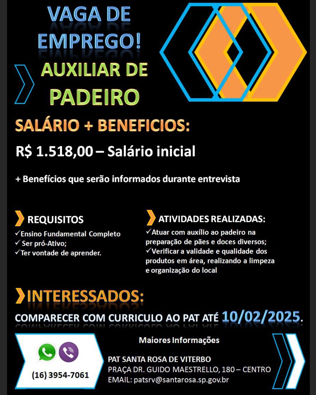 Vaga de emprego em aberto no PAT: Oportunidade para Padeiro