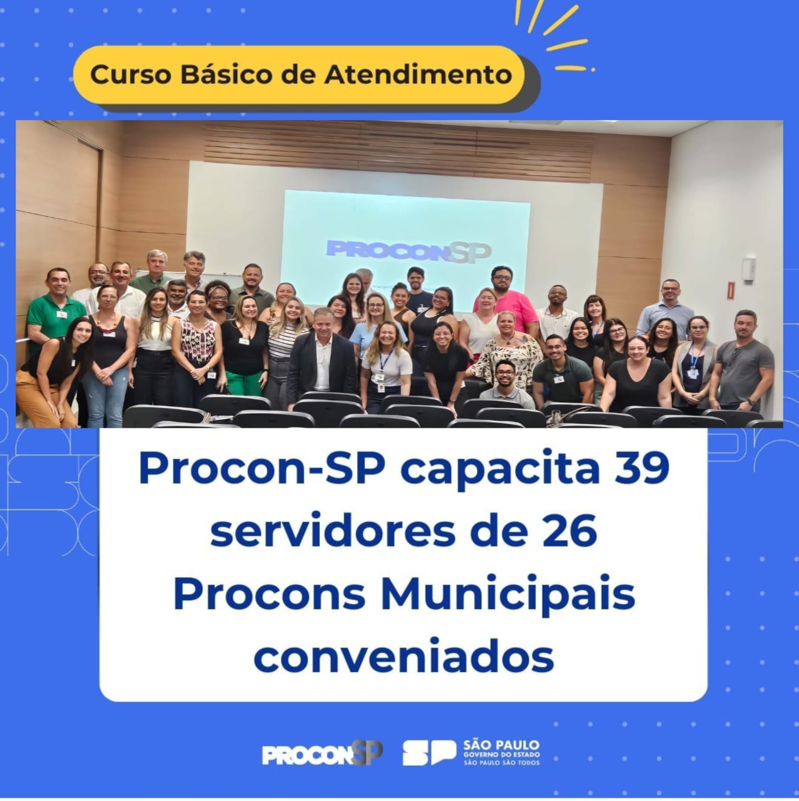 Essa ação também atende ao convênio com a Fundação Procon-SP e ao pedido do Ministério Público. A etapa presencial do Curso Básico de Atendimento, realizado pelo Procon-SP na última semana na Capital, capacitou 39 servidores de 26 Procons Municipais conveniados, dentre o de Santa Rosa de Viterbo. O principal objetivo do curso é uniformizar e padronizar os procedimentos, garantindo assim a melhoria na qualidade do atendimento prestado.