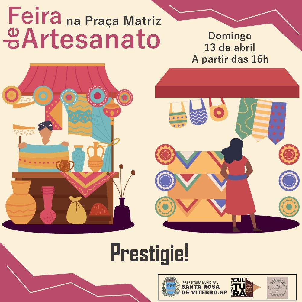 Neste domingo, 13 de abril, acontecerá a tradicional Feira de Artesanato na Praça da Matriz, a partir das 16h. O evento reunirá talentosos artesãos locais, oferecendo uma ampla variedade de produtos exclusivos e de qualidade. Além disso, alguns feirantes de gastronomia também estarão presentes, oferecendo deliciosas opções para todos os gostos.